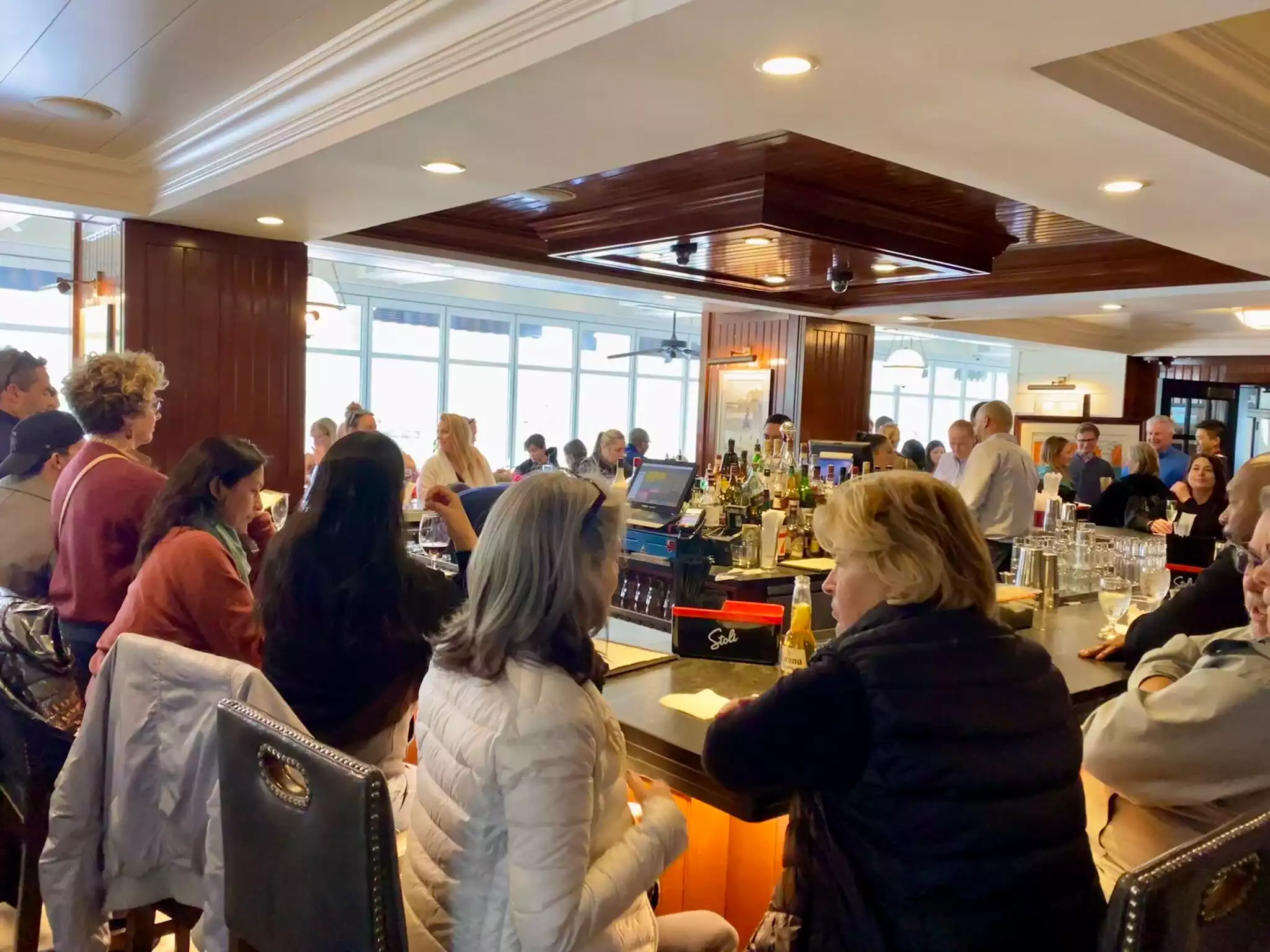 We had dinner scheduled for 4:30pm. We arrived 30 min early cuz wanted to have drink at the bar. Once we got seated and was given an amazing window seat, our service was impeccable. Our waiter and bus person very personable and drinks/food were very timely. The only downfall was since we had reservation we thought we would have somewhere to have a drink at bar ahead of time but was very full. I think anyone could stop in and have drink in bar. My daughter and I ordered little dirty martinis and I always say really cold. Understand very busy (only looked like they had 2 bartenders for entire restaurant). We could only drink a few sips of them. They weren't very chilled and really no dirt. Her's had a wierd taste to it and we have been drinking martini's for years. Waiter was nice enough to get us something else and take off the bill.