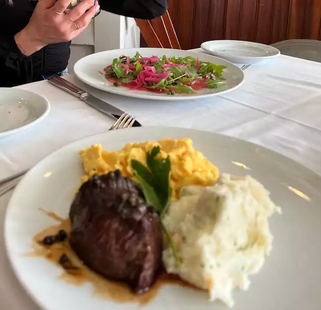 For years, I wanted to visit this restaurant. I was either too late in garnering a reservation or it was closed. Finally, this trip, I was able. I booked my reservation maybe 3 weeks out. Unfortunately, I was one day too late, after reservations opened, to get a Saturday lunch time, so I picked Friday at 11:30am. We were seated by the window with a perfect view of the lake. Service was exceptional from the door greeter to our waiter. My friend had the fish n’chips, which she said was the best she’s ever tasted. And that’s coming from a Seattleite born and raised on Pacific Northwest fish. I had the swordfish. Perfectly moist and seasoned including the side olive and artichoke salad. The Central Park Boathouse was one of the restaurant highlights of this trip!