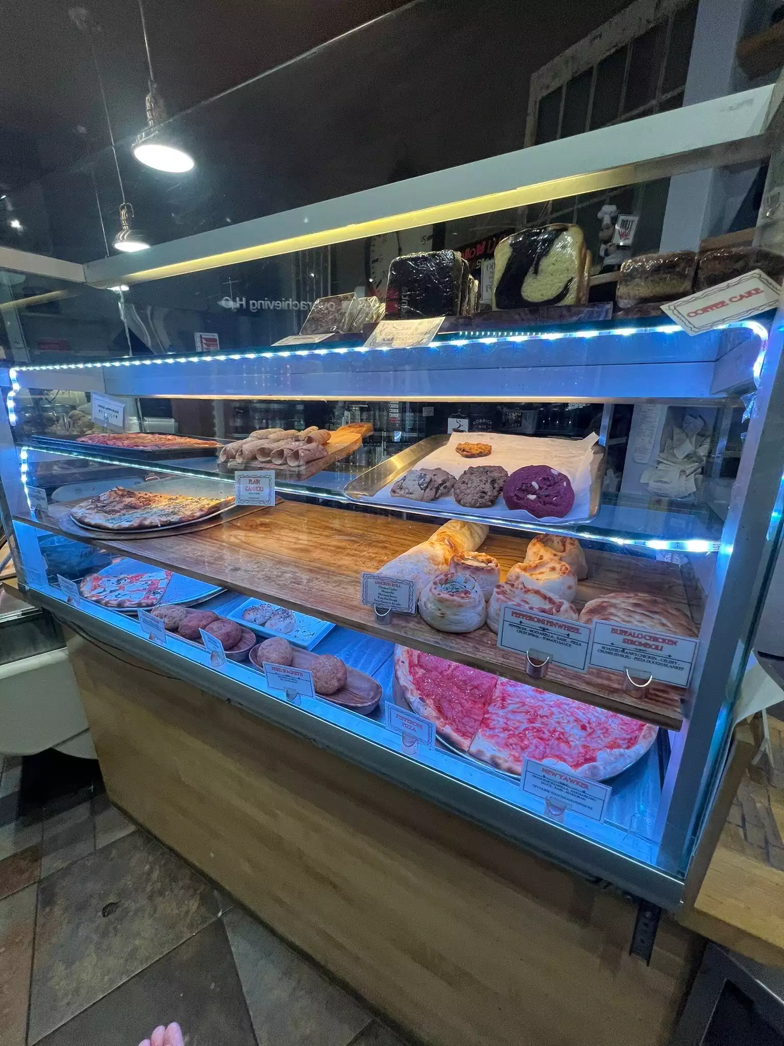 Great little place for a quick bite or a take away. Pizza by the slice and all sorts of easy to eat pieces of food. Recommended.