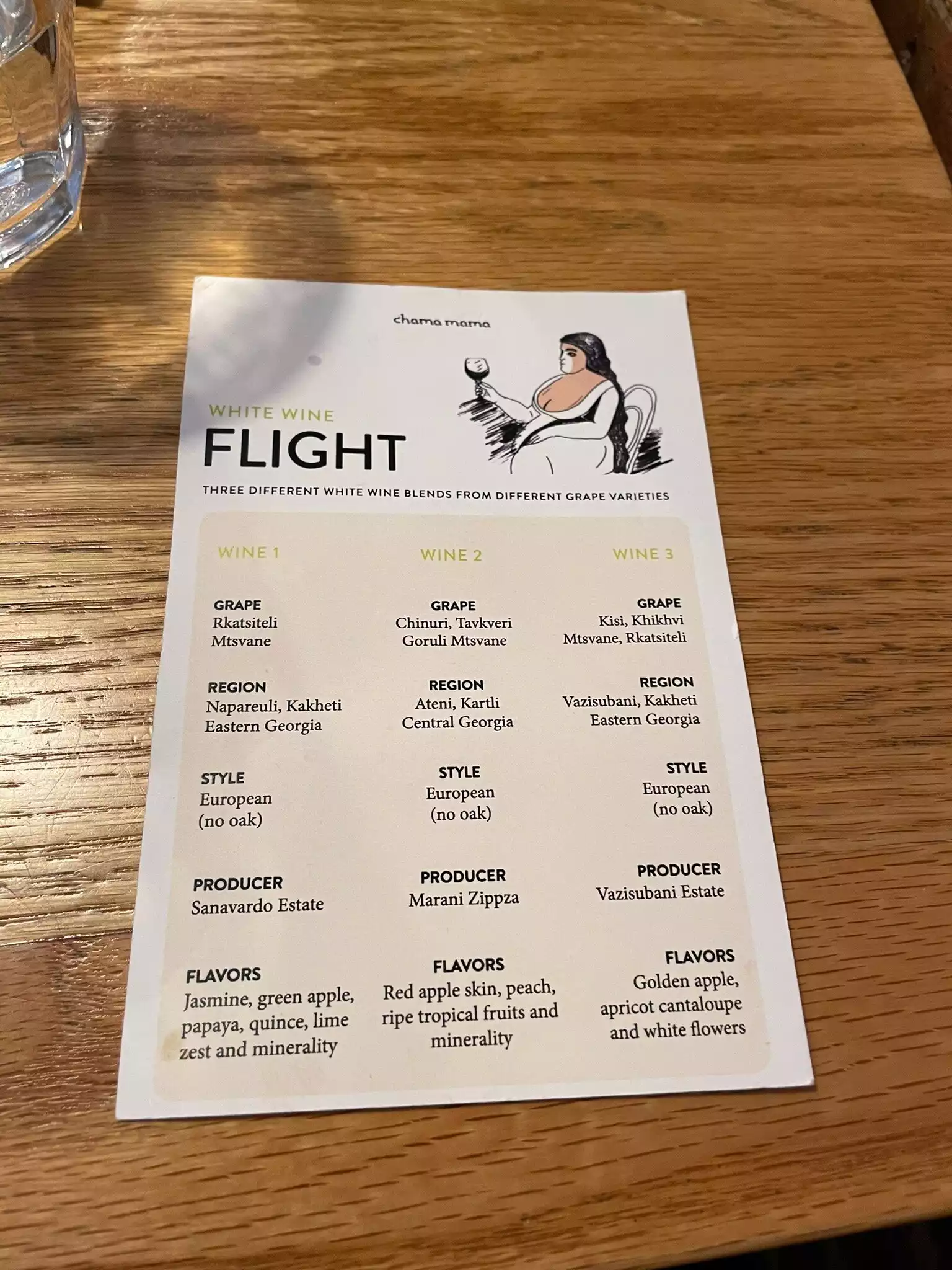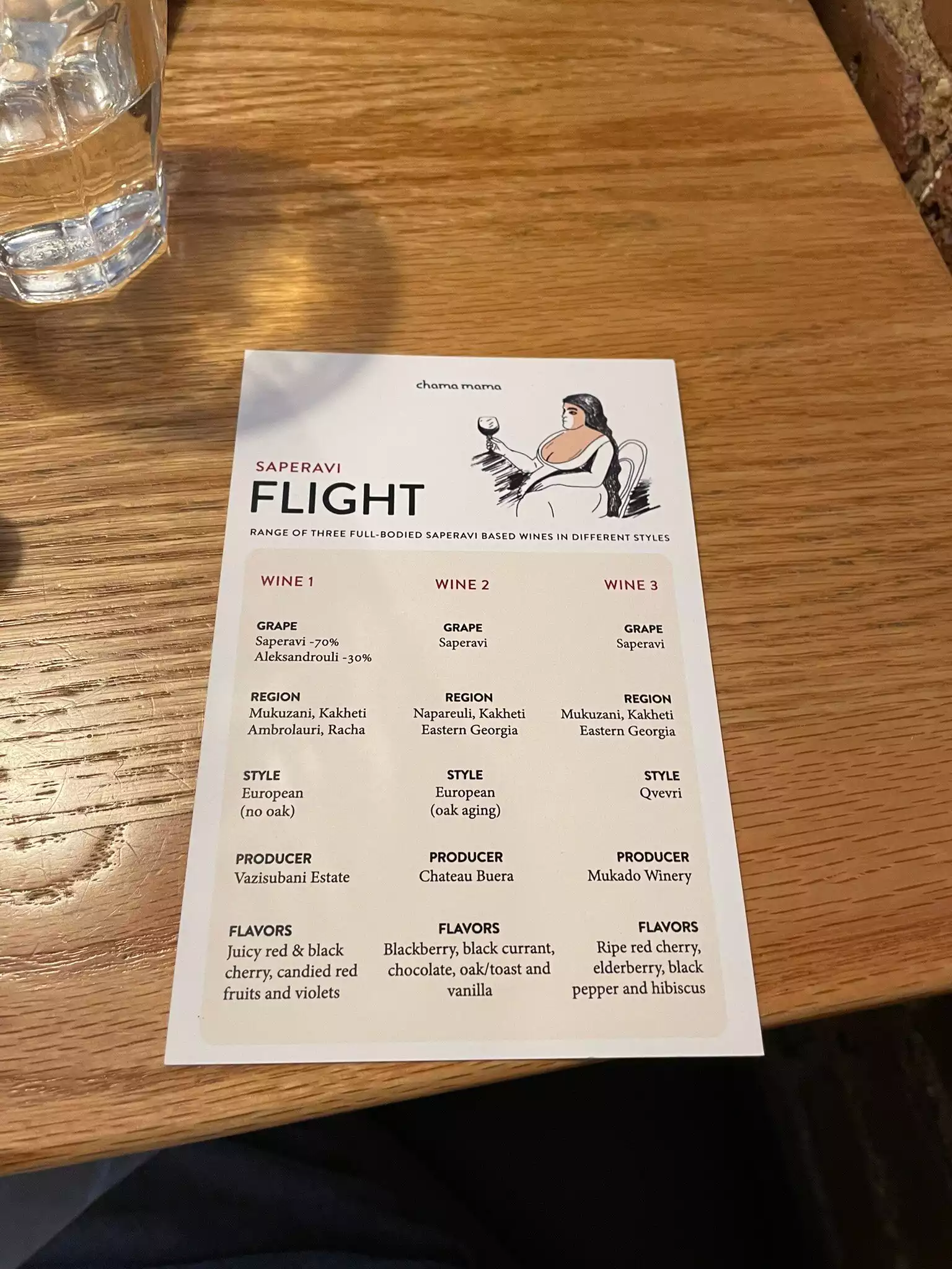 Chama Mama was unexpected delight. This hidden gem packs unexpected flavor into every dish using a variety of herbs and vegetables. The menu focuses on Georgian cuisine, and everything we ordered was excellent. We chose the eggplant for an appetizer, and the Georgian salad and roasted chicken for dinner. Everything was so full of flavor and fresh herbs in every bite and beautifully presented. The chef cooked the chicken perfectly, moist on the inside and just a little crispy on the outside. The restaurant seems to put a lot of thought into where they source their ingredients. The tomatoes in the salads were more full of flavor than any tomatoes I have had in a long time. We did not have a reservation so we sat at the bar, and the bartender was lovely, despite being very busy. Only suggestion is that they could offer Diet Coke (no sodas) and they could do a little more with the interior decor, but all in all, this is a wonderful little restaurant that cares about serving the very best food and we are eager to return.