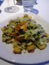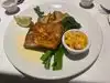 The halibut, chopped salad, and lobster bisque were excellent. The seafood and mango stack always delights. The rice was a bit bland, and the veggies a bit too al dente for me.