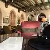 Yes you may feel you have stumbled into some time warp movie set. Looks Art Deco to me but it's also got medieval tones.The garden terrace was undergoing replanting when we visited. This is more like a cloistered. Definitely would be my home from home in LA. The burger I ordered was very good. They did a reasonable Aperol Spritz. So not all Peter Cushing here.