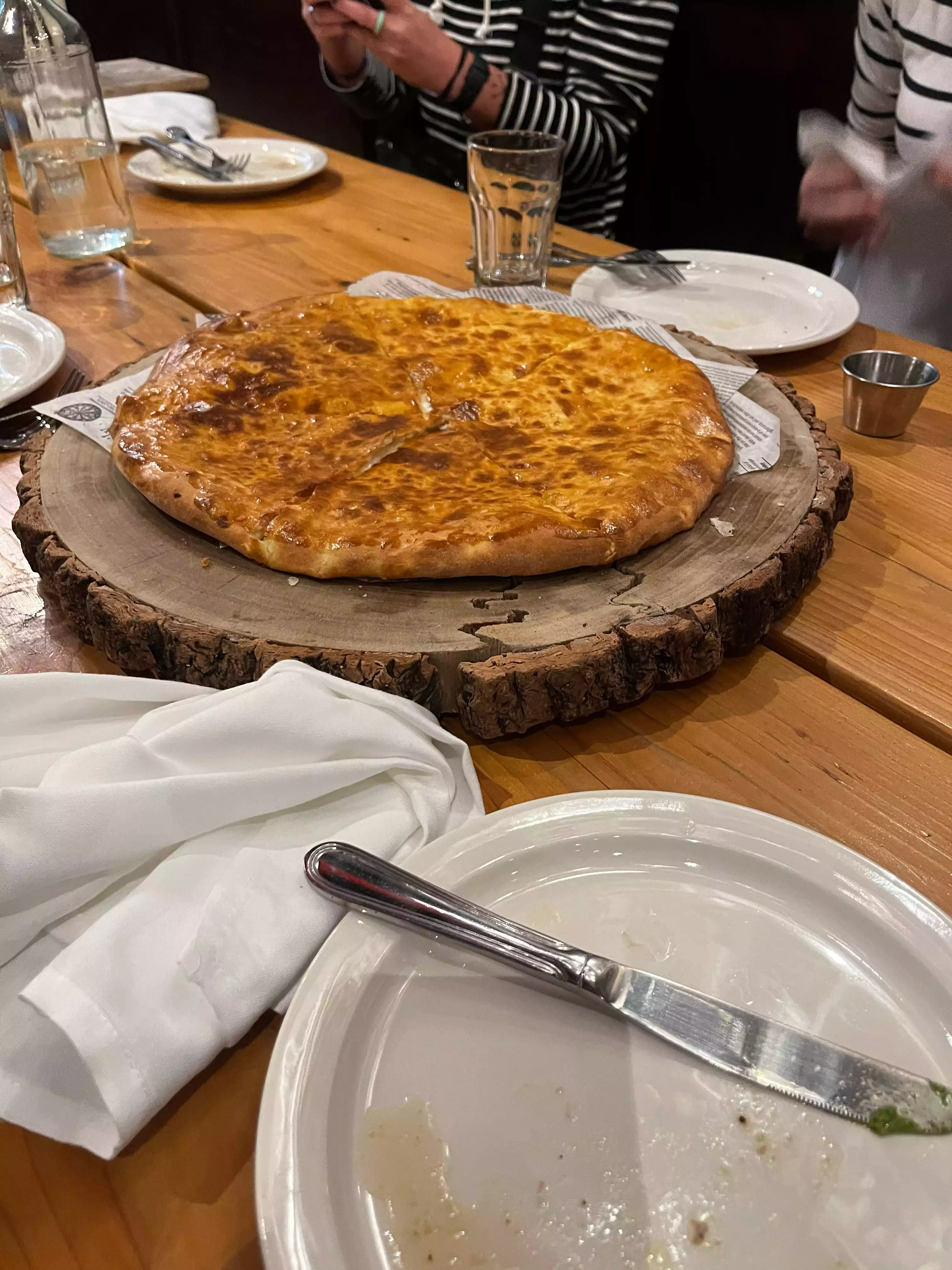 Really great Georgian cuisine We love cheese with beef in boat So delicious and taste really that we needed Also we tried the Georgian beer and mineral drink