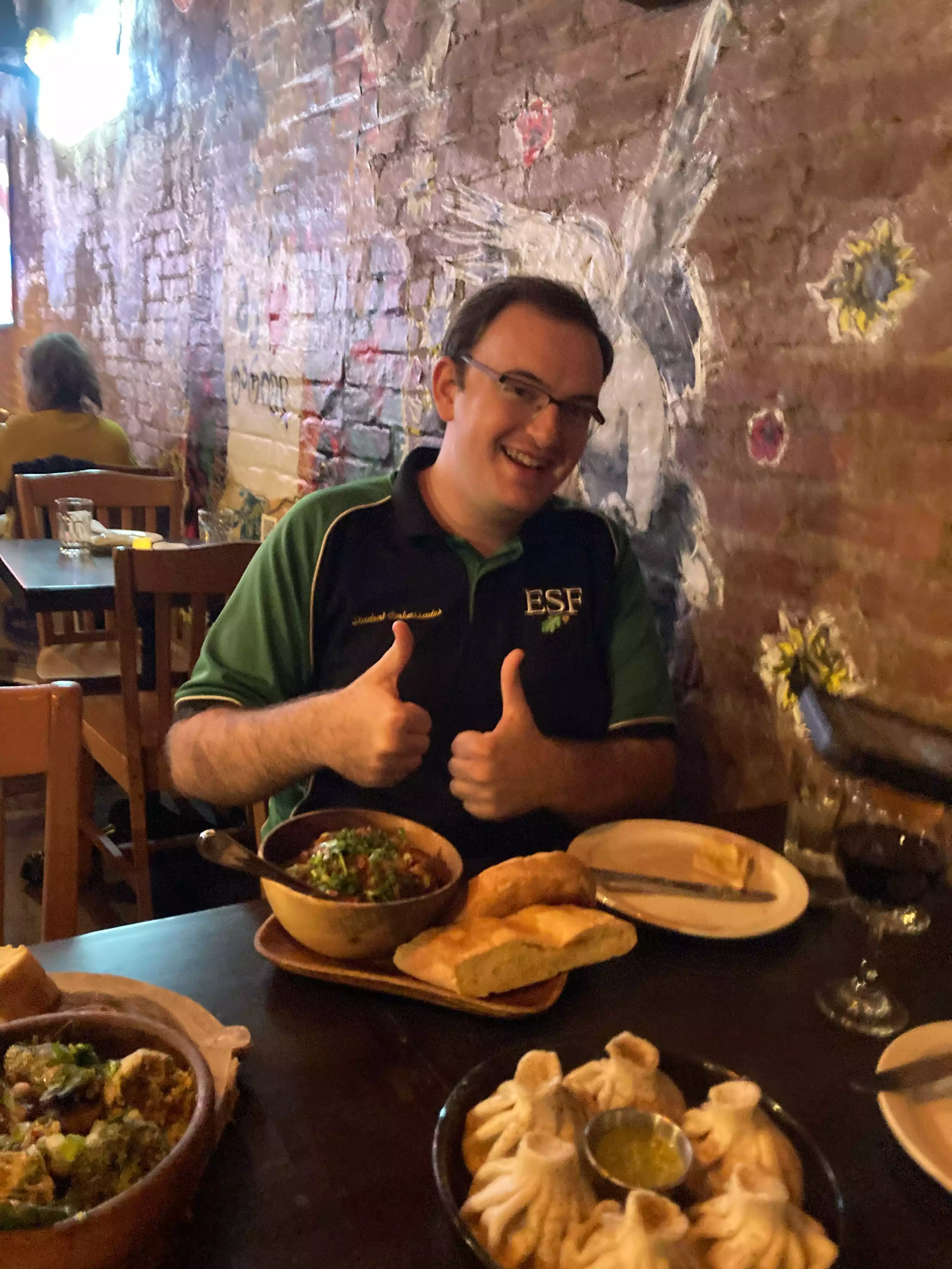 We had such a good time eating here. The proprietor went through the menu with us, described everything and helped our party of five pick out some terrific choices. We started out with the Kartvelian Salad (tomatoes, cucumbers, onions, seasoned to perfection), then moved on to the Lobio (a delicious stew of kidney beans, herbs and spices) then Khinkali dumplings, the vegetarian option with cheese and spinach, a sight to behold, then finally 2 cheeseboats, the gouda and the traditional. Yes, it really is a bread boat full of melted cheese, and it's delicious. All accompanied by Georgian wine and beer. All highly recommended. Such great friendly service and atmosphere. Hope to be back soon.