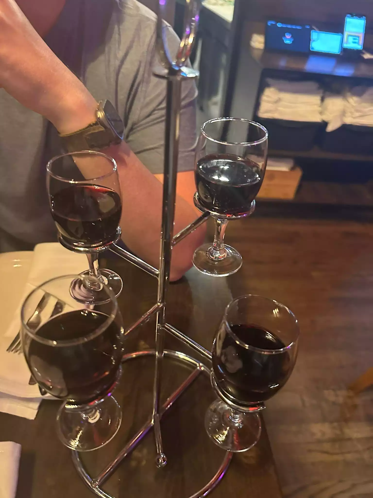 We had a blast trying the red wine sampler (believe they were all Georgian wines and they were wonderful). We also tried two cheeseboats and both were delicious. Can’t wait to come back here and try all f the varieties. The food was reasonably priced as well