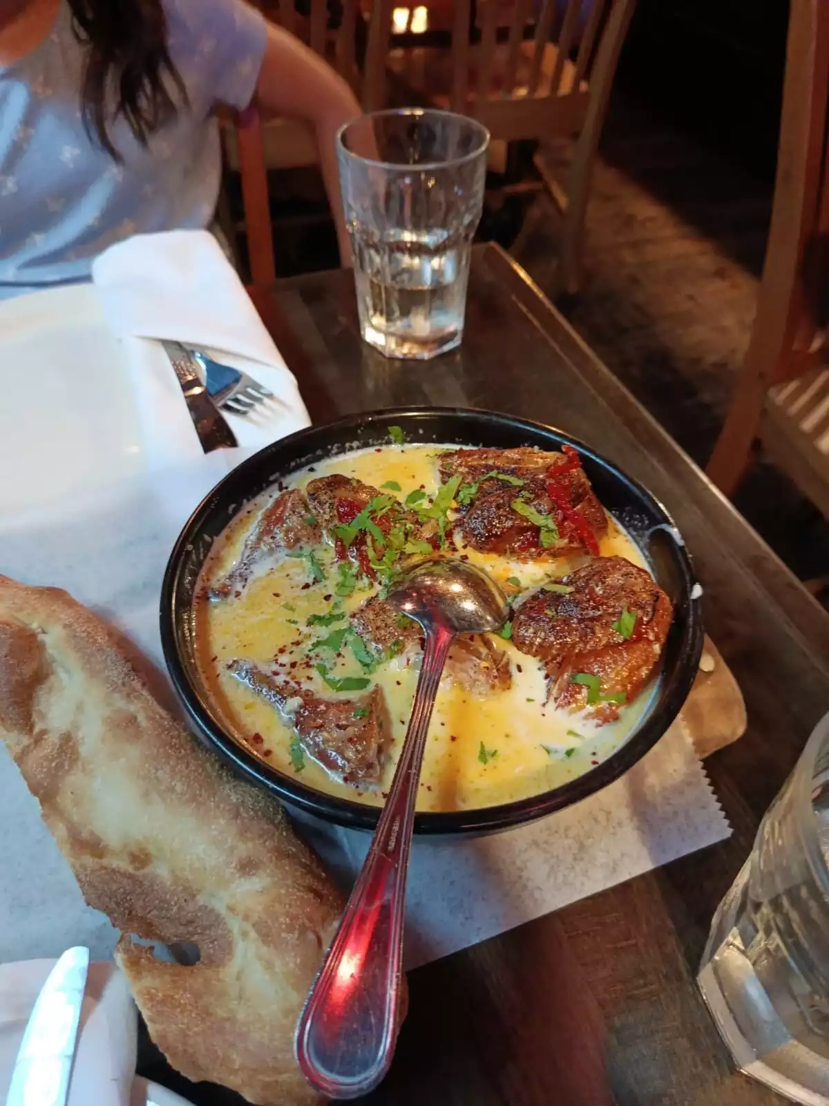 Two couples with reservations before a show and we stopped for lunch. We were in and out in plenty of time and didn’t feel at all rushed. In fact, we were made to feel right at home. Service was superb. Suggestions were offered and choices affirmed. We had small plates and cheese boats at our table. Everything exceeded expectation, was so delicious, and we ate every last bite. Definitely stop here. You will be so glad you did!
