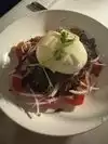 Was 3 person at table. Server was very friendly and informative but noise level was too high. Had to talk very loud. One person wanted a steak but the smallest steak was 14 oz. So we had salmon and short ribs. I had 2 appetizers. Short ribs with whipped sweet potato. Ribs were mushy and almost a powder texture, sweet potato was whipped to the point where it was baby food. Salmon portion was generous but needed salt. Not very tasty. Just a big slab of salmon. No presentation. Caesar salad was good. Burrrata was okay and crab cakes had too much bread crumbs. Was not tempted to order desserts just wanted to leave. Restaurant needs to decide what it is. A bar with good moderate prices or fine dining but both is not cutting it.