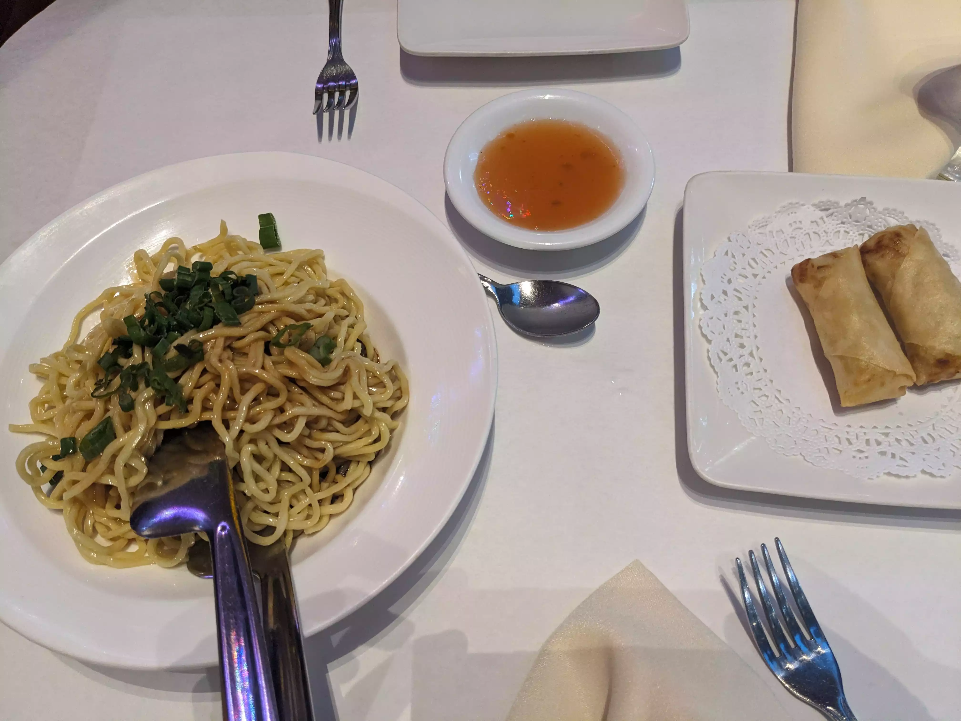 We had an early light dinner at Chef Yu. We had happy hour cocktails followed by egg rolls, fried dumplings, scallions pancakes and cold noodles in peanut butter sauce. Food was really good as same as service.