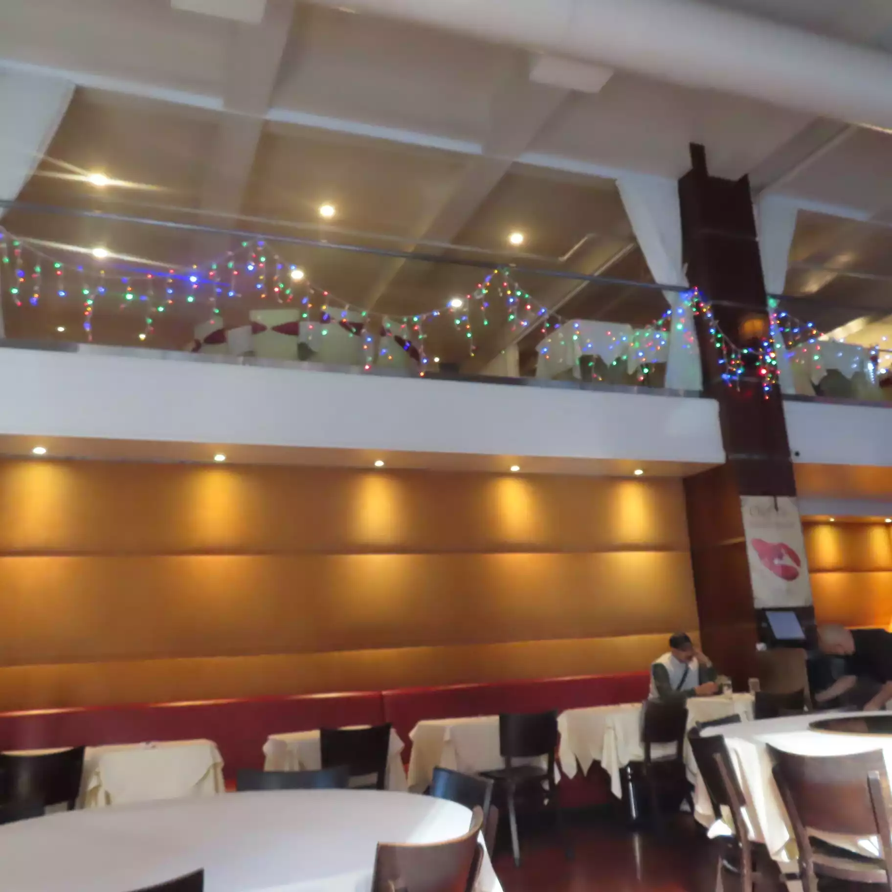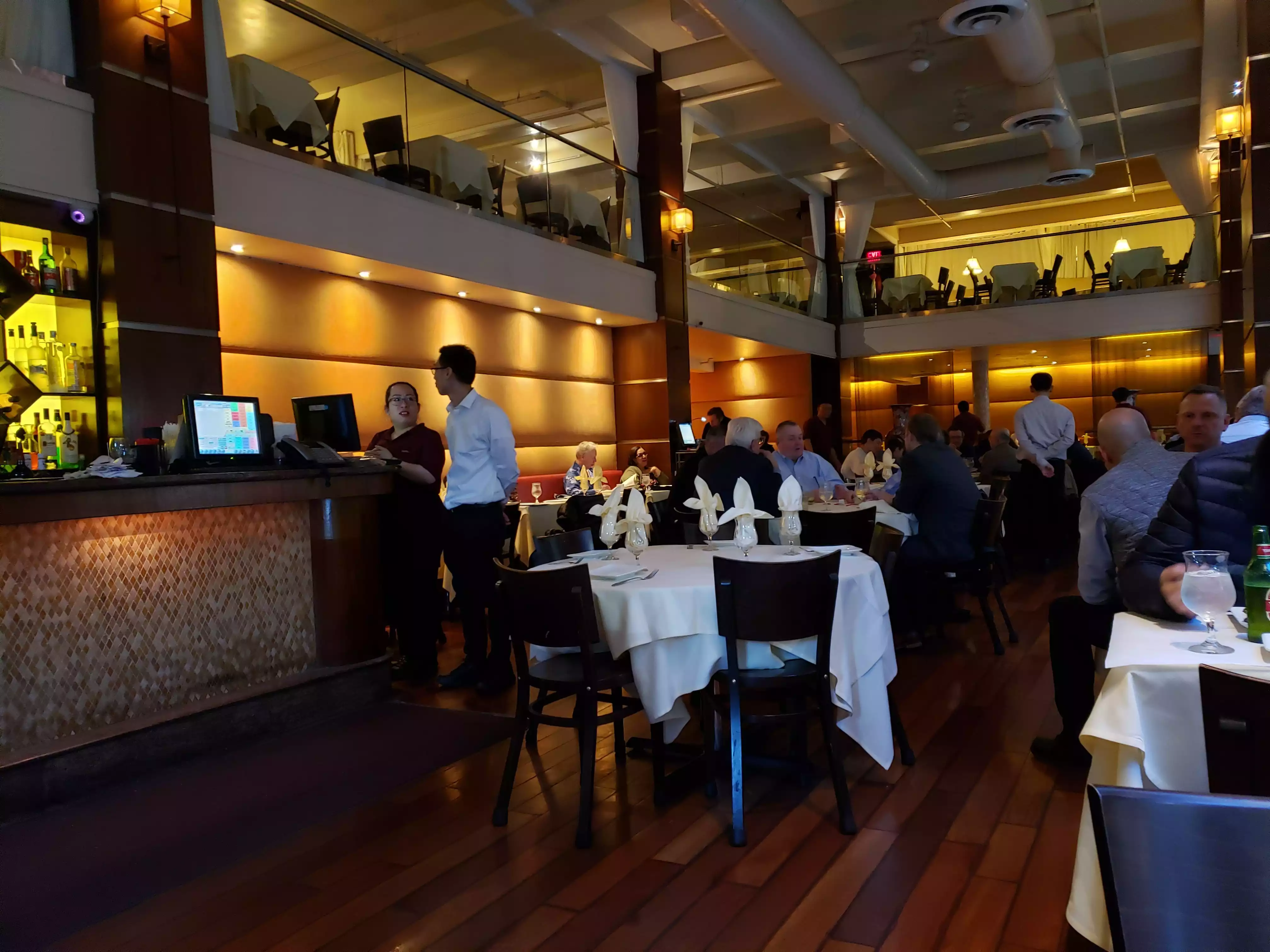 The service was quick -- quick seating, quickly served. The lower level was definitely colder than the upper level. Being seated on the upper level, I was able to eat without my coat on but upon leaving I noticed that people below ate with their coats on because the wintry air could be felt. Staff was friendly also.