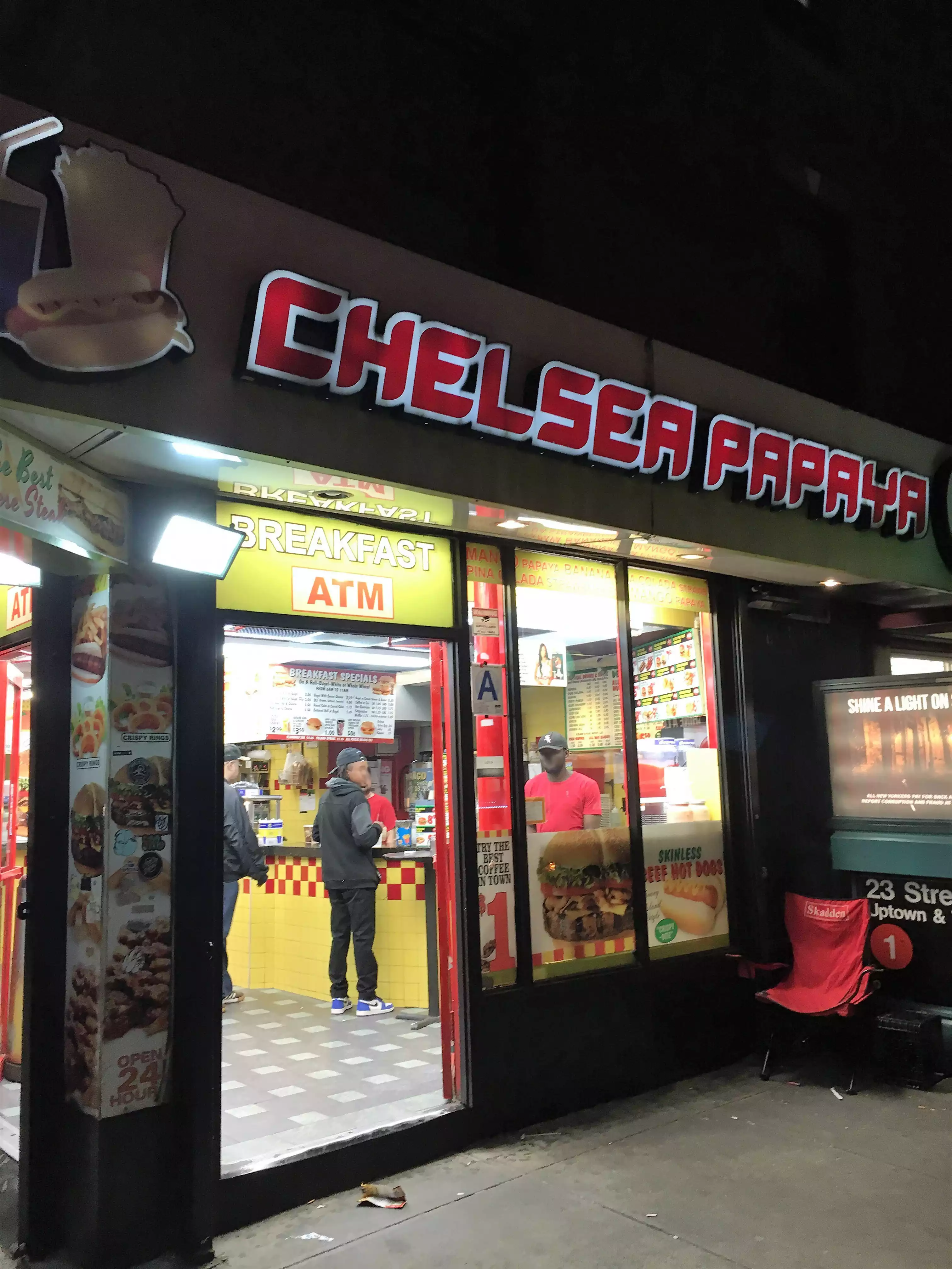 NYC of course has so many options for food. But for a cheap meal, there is nothing like a couple of hot dogs and a papaya drink. The Chelsea Papaya was close to my hotel and more convenient than the better known Gray's Papaya or Papaya King. The taste of the dogs were very similar to Gray's and the papaya drink was refreshing. You're able to be in and out in about 10 minutes and cost for 2 dogs and a 16oz drink will run you about $5.