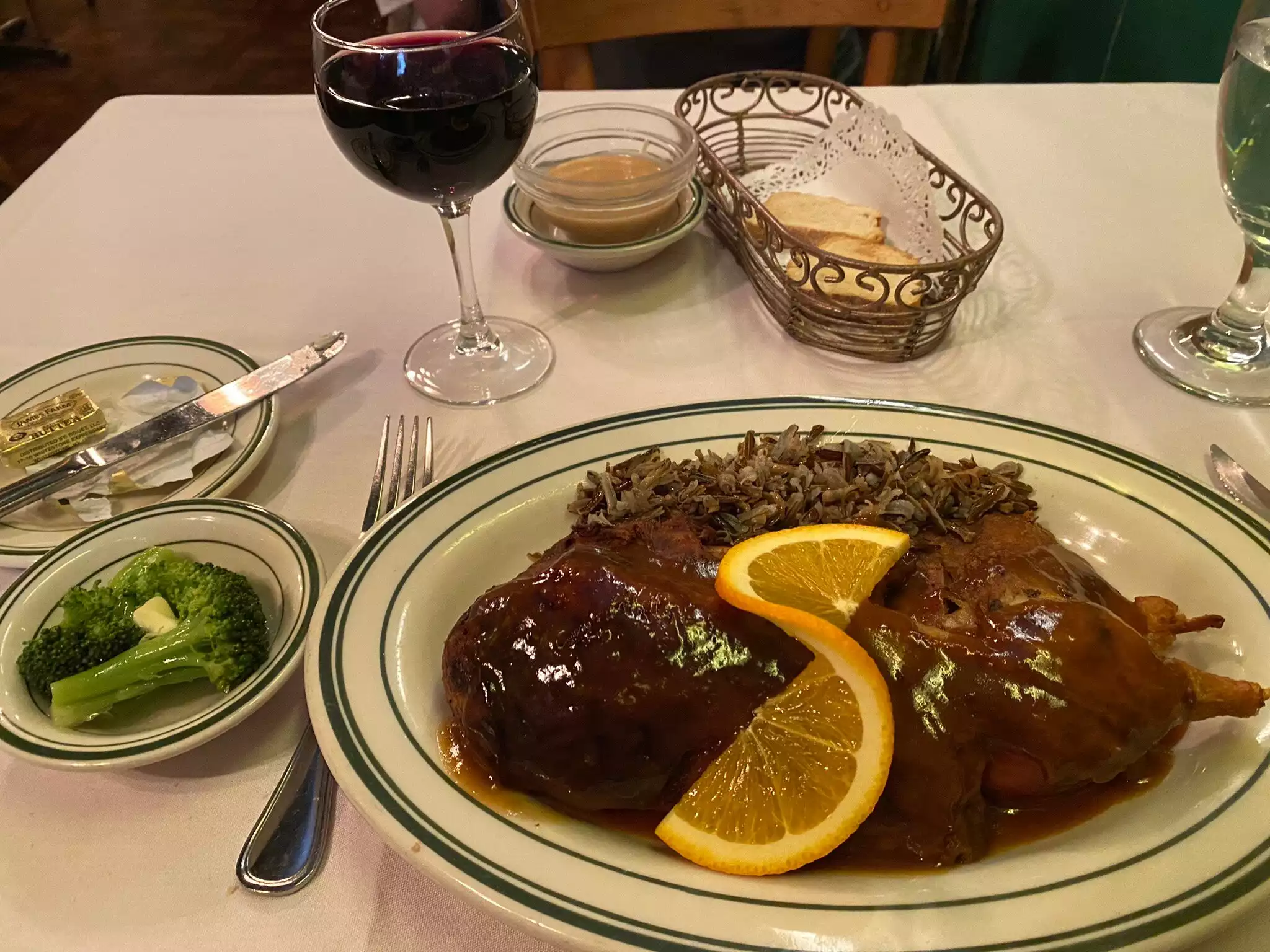 We had high hopes for this highly recommended restaurant but they were dashed from the beginning. We selected Bordeaux Superior but were served a Bordeaux with a brand name, but clearly they could have given us any Bordeaux. The escargot was out of a can and served in reusable shells. They charged us $10 to share the duck, which amounted To $10 for an extra spoon full of very ordinary wild rice. The duck was nothing to write home about. One may call it a neighborhood restaurant, but we call,it "tired".