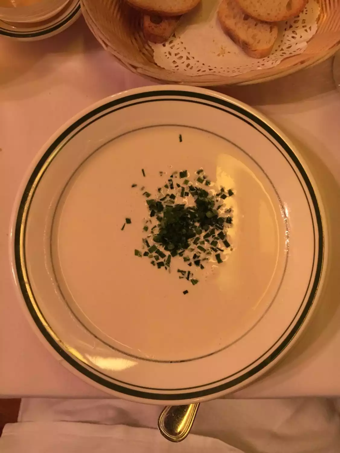 Amazing French Bistro in the heart of NYC. Silky smooth, slightly peppery, rich vichyssoise, best I’ve had. Tender Canard a l’orange with crispy skin and not-too-sweet sauce. Do yourself a favor and order a soufflé at the beginning of the meal. Carried proudly from the oven with a high crown and smooth ( in my case gran marnier) sauce was an amazing end to a lovely meal. Do not be in a rush! The kitchen does not and will not rush! Take time to enjoy yourself! Merci Madame!