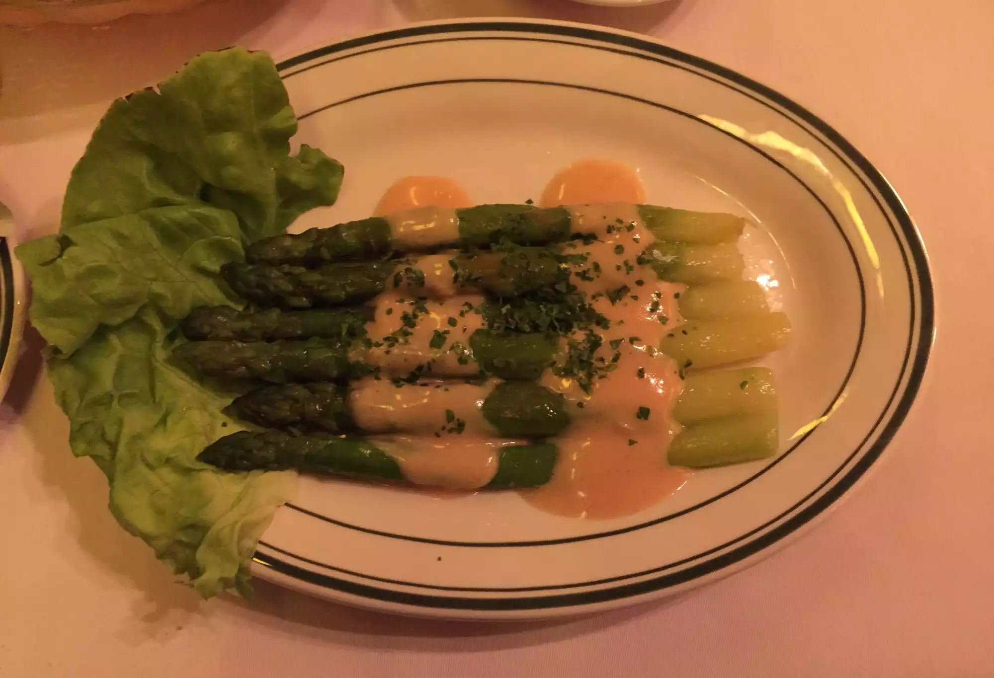 We enjoyed this restaurant very much. It's one of our son's girlfriend's favorite places. It's more charming and cozy than trendy or glitzy. Our son ordered a selection of hors d'oeuvre which were all excellent. My wife had large asparagus as her main course, which she raved about. I had beef burgundy and mashed potatoes with onions. The Cabernet wine was very delicate. Our server was from Montpelier and did a wonderful job.