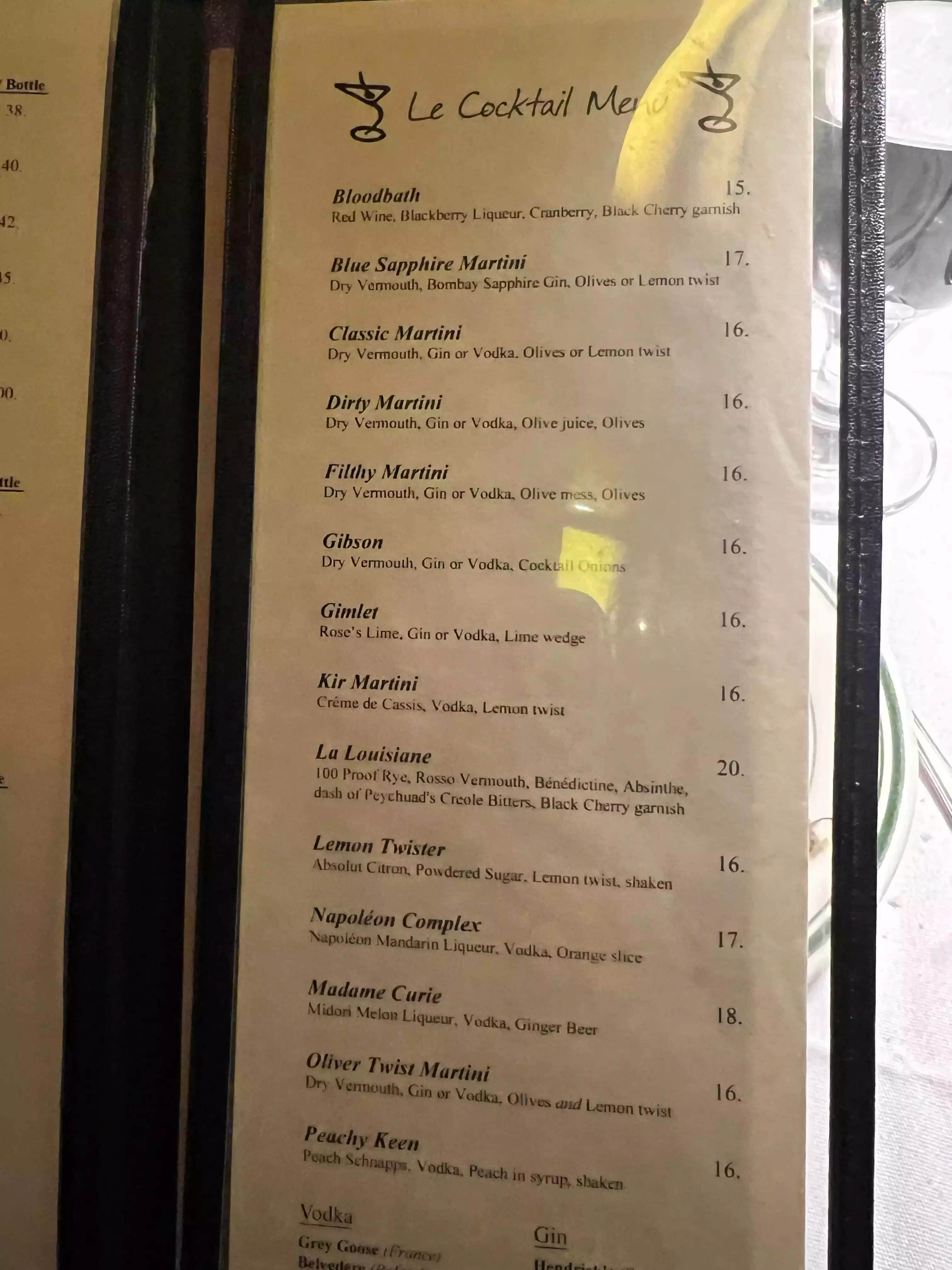 The food is as close to a French home cooked meal as one can get in NYC Prices reasonable. Ambiance -old school, homey, nothing fancy. Came very early cause it was booked all night after six. Although they had a good prix fixe, we stayed ala carte focusing on the sauces There is a martini and wine menu with a decent small selection. We had escargot in the shell provided with all the necessary utensils. We followed with liver and onions and shrimp and rice. Everything was amazing Highly recommend and plan to return soon