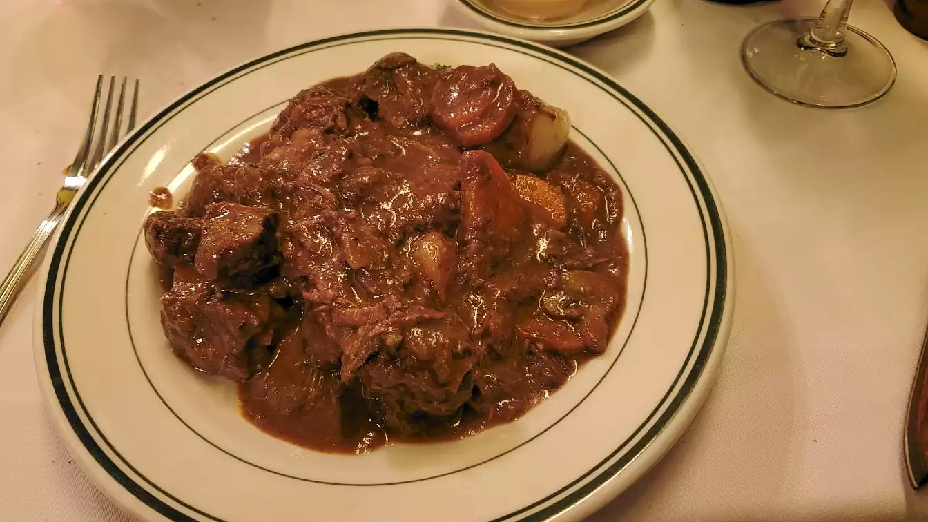 A big disappointment! My cow au vin tasted like it had been cooked in vinegar. Every person in my group was disappointed, including one member who had been going there for years. Even the soufflé which other reviewers had raved about was mediocre. Would not go back.