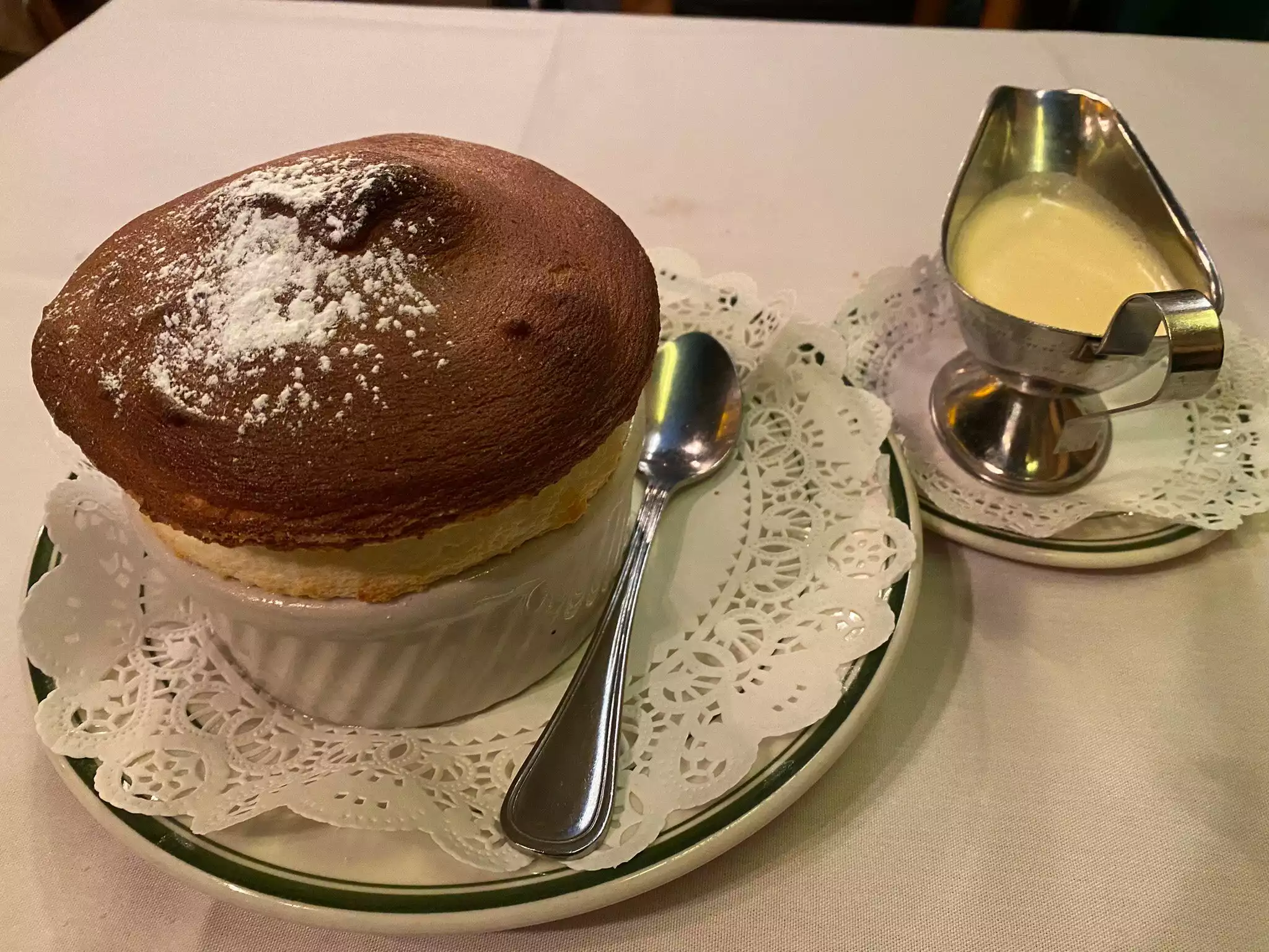 We’ve gone to this restaurant for 47 years infrequently because we live out of state. We have loved it all these years. Although we are sympathetic to the restaurant’s problems with the building’s gas lines needing replaced on top of Covid, our recent experience was very disappointing. My husband and I had two courses each plus shared a souffle. We had no complaints about the salad or amazing cold asparagus and dressing. My sole was nicely prepared and my husband’s beef bourguignon tasty. Presentation was curious. His burgundy was not served in a crock but plated as a heap on a cafeteria-type plate. While mashed potatoes used to be the norm with the burgundy, we each got one small peeled cooked oval potato and a cherry tomato on each of our plates. They were insignificant. There was a tasty spaghetti squash side about the size of a half dollar. To continue this theme of unsubstantial, I asked for more bread. The waitress turned to my husband and asked if he needed more bread! He said no so no bread arrived. Our bill was over $200—didn’t we deserve more bread since we asked?
