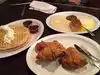 Just recently went for brunch with my cousin brother and her fiancée. I did not order any waffles but instead opted for the chicken and catfish dinner with a side of greens, red beans and rice, and Mac n cheese. The Chicken was great and the greens were flavorful, the Mac n cheese could have used a little more cheese and the red beans were decent. Our server was very polite and always available when are cups needed to be filled and he checked on us often. I gave it three stars instead of four because the side dishes could have been better and the cornbread was too dense. Overall I enjoyed the experience and I would go back again.