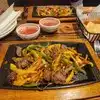 I honestly thought my “steak fajita” was a practical joke until I saw the other $26 “steak fajitas” served at our table. It was a pepper and onion sizzling plate with 3 to 4 small (bite size bits) of steak (view photos). It was dishonest at best, unless it was a vegetarian dish. I don’t know if that was as bad as the service we got sitting in the bar. Our water glasses were empty from the time the food was served until literally 40 minutes after we were done eating. Never saw our waitress until I stopped her and asked for more water. None of our plates were cleared until a few of them at the very end (View photos). We had to go up and find someone to request our check to pay. Outrageous. If they were busy I could understand- restaurant was 80% empty. Was never offered dessert (this was a birthday dinner for 5). 🙄🤦🏻♂️ Note to management- consider a new line of work.
