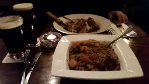 I was here last night with the wife and my oldest daughter. They had live Irish music playing. We had the Guinness steak pie, braised pot roast, and the special pork belly. It was all great. The chef here does a great job of preparing the food and the flavors are just unreal. This said my daughter is a trained chef and loves the food too. The portions are over size IMO since I rarely finish my dinners and usually have leftovers to take home. The service is good and friendly. They have a larger dining area beyond the bar, a garden, and can host events upstairs. Its all good so stop by for a pint or supper.