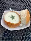 Good crab chowder in bread bowl for a reasonable price. Outdoor seating which is nice. Also serve beer and wine.