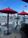 Enjoyed a fish and chips and a burger with a great view of the wharf and entertainment by a Street Vendor nearby. Nice fire pits with chairs to relax by. We stopped later and had a drink at the bar outside with heater above. It was wonderful.