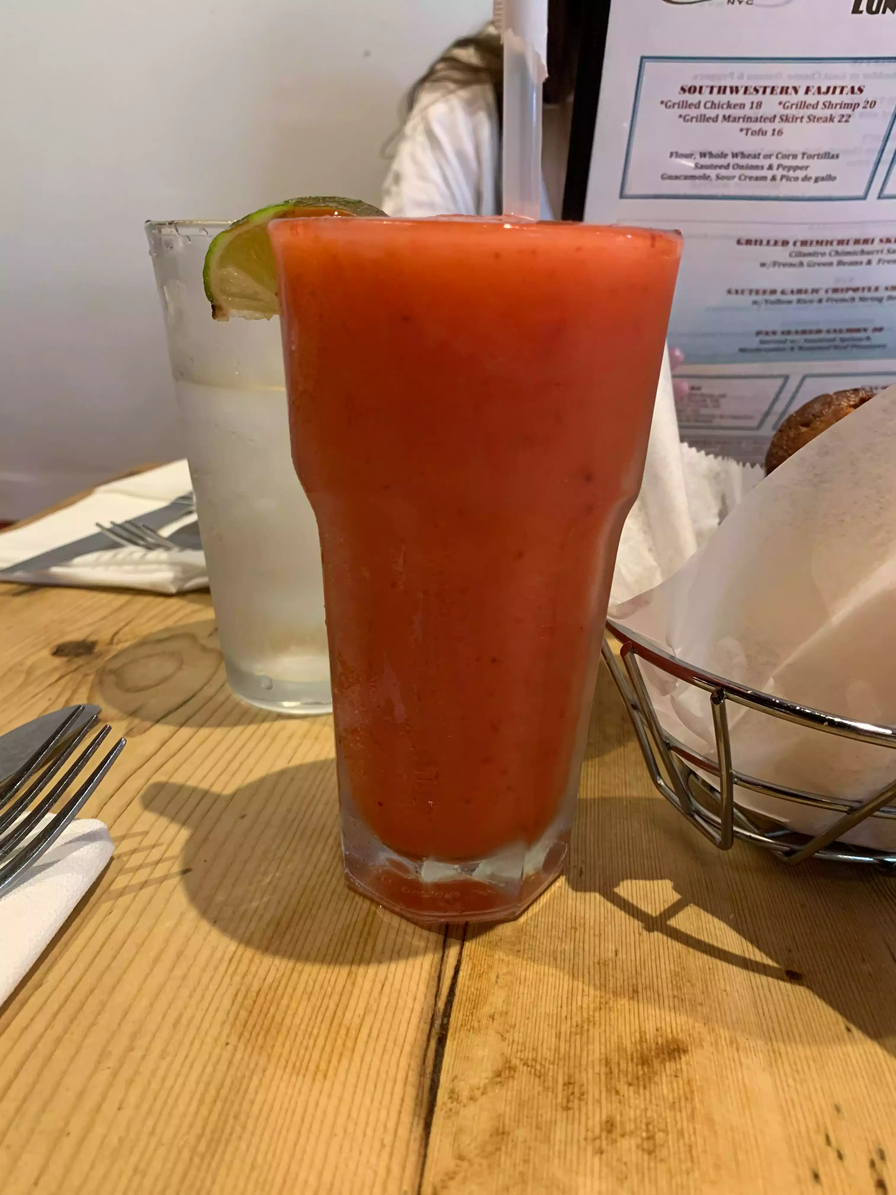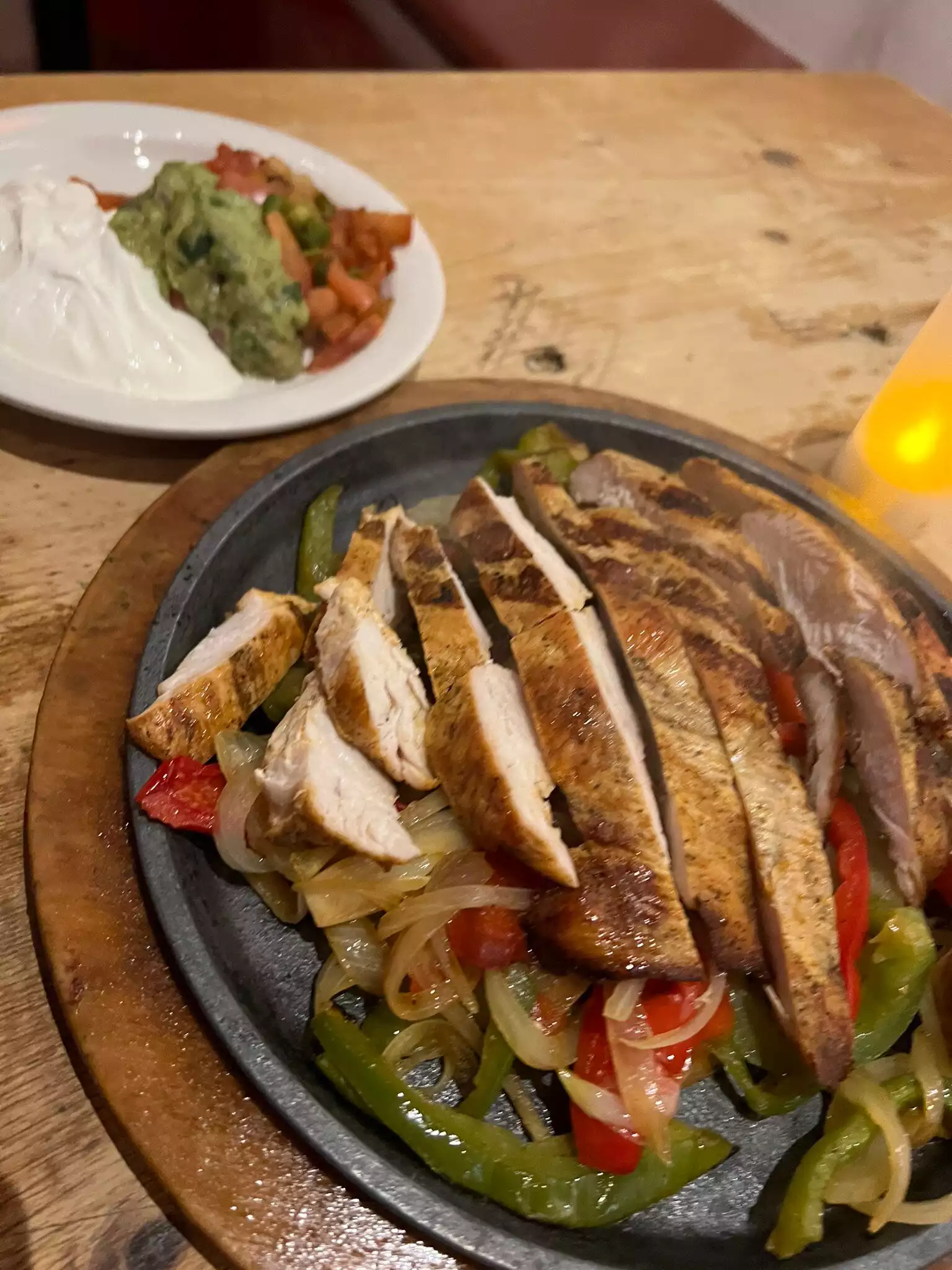 Came back after a month so, we shared a tasty steak fajita with some adult beverages to wash it down. Decided to have a frozen instead of the rocks. It was so sweet my face went paralyzed from the sugar. Had it sent back.