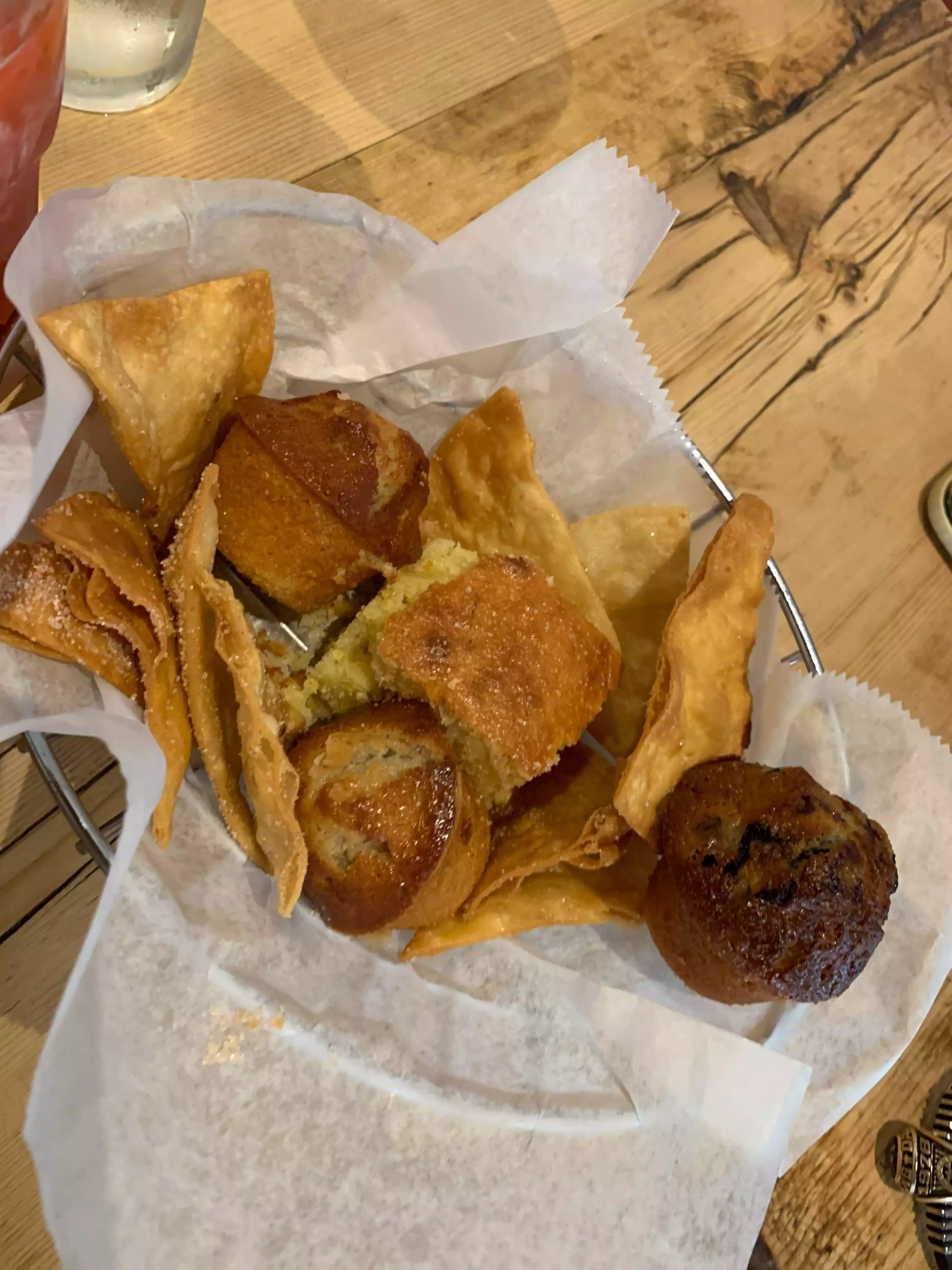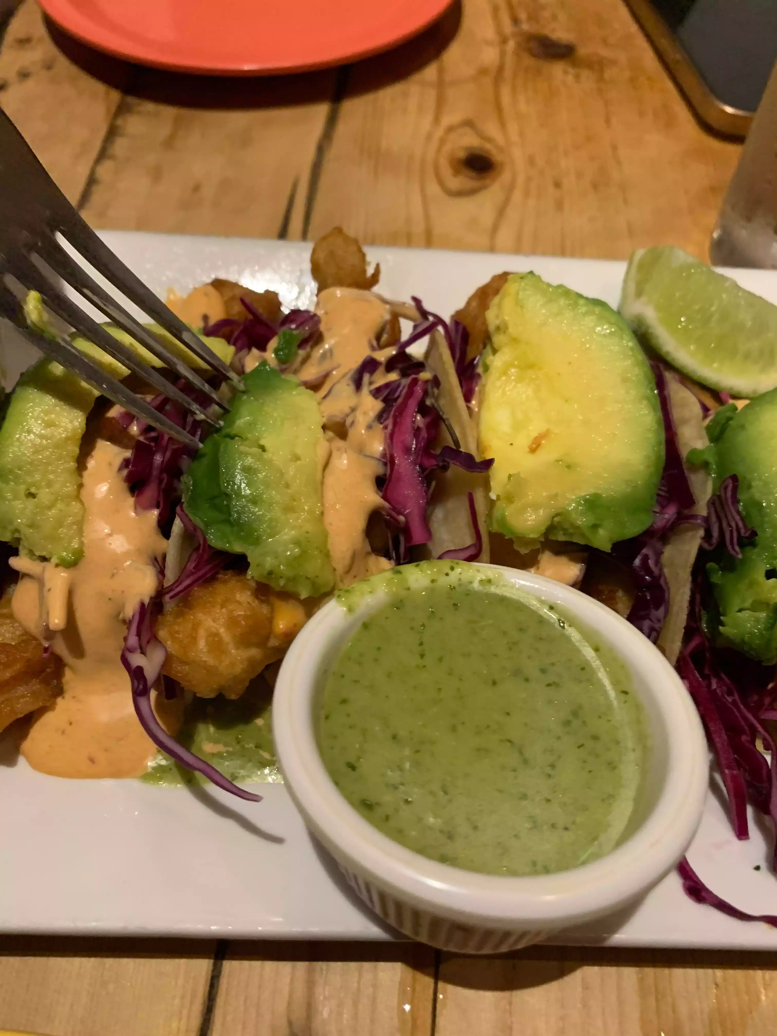 Wanted Mexican with outside dining hence Cilantro! Service was okay - felt rushed to order! Realized waiter was double duty in back and our table outside. He dropped the ball a bit but then surprised us with a yummy desert....well done sir! Tacos delish, queso even better once we hunted down a basket of chips. Fun night nonetheless. Ole!!!🌮