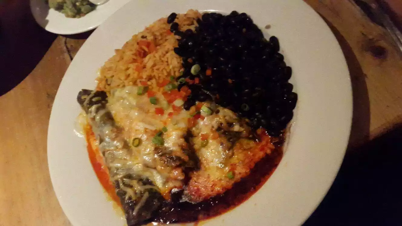 I was recommended this place by a colleague so when I found I was staying in a hotel only about a mile away I decided to go. I was a bit skeptical when I saw the place and also when I saw the menu. It looked like most Mexican joints but when I got my food I had to agree with my colleague that this was really really good. I got the homemade guacomole and then quesidillas with blue corn tortilla and chicken and they were heavenly. The black beans on the side were some of the best I have had. I walked away very full as I was trying to finish my plate as it was soo good.,