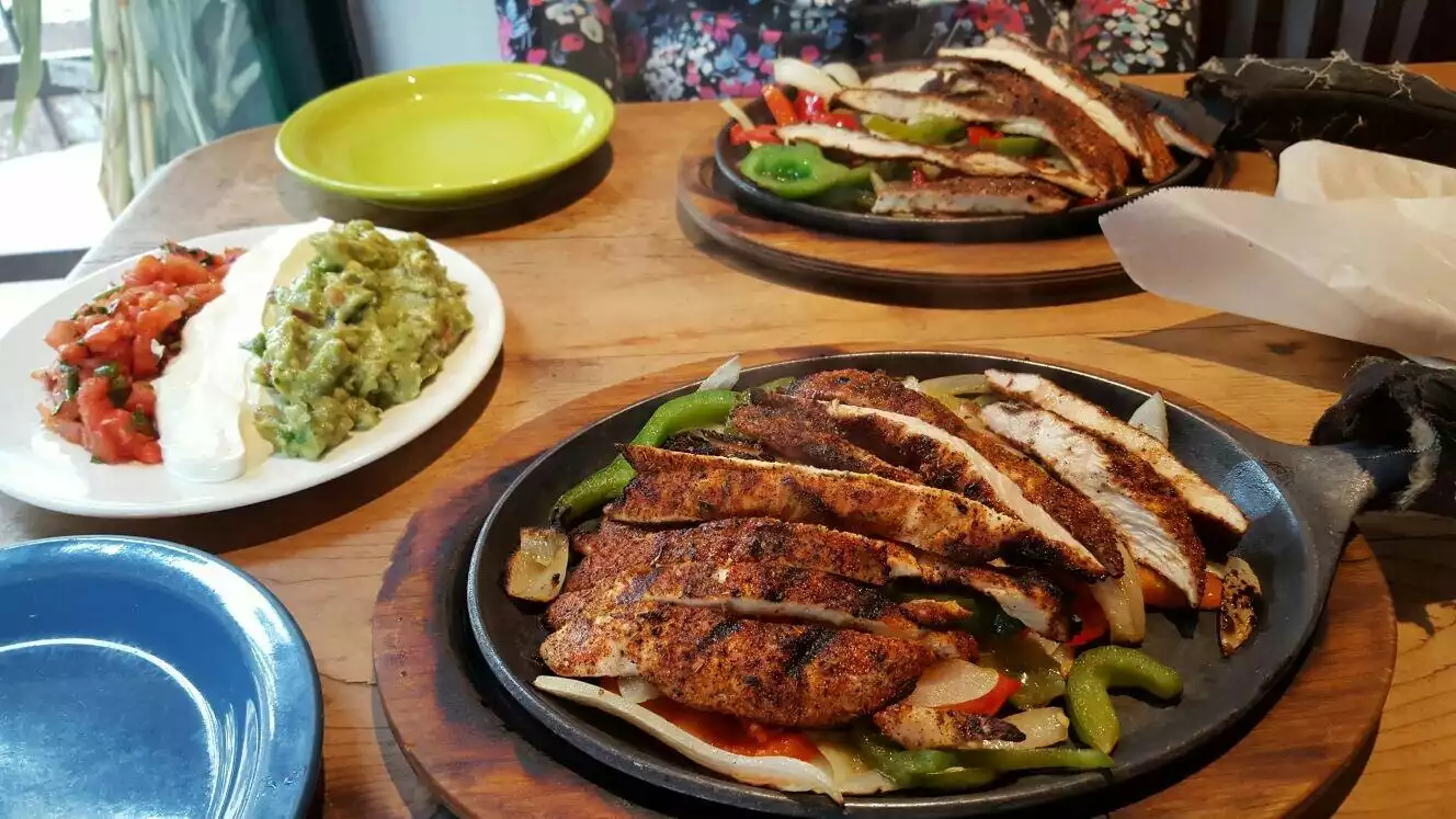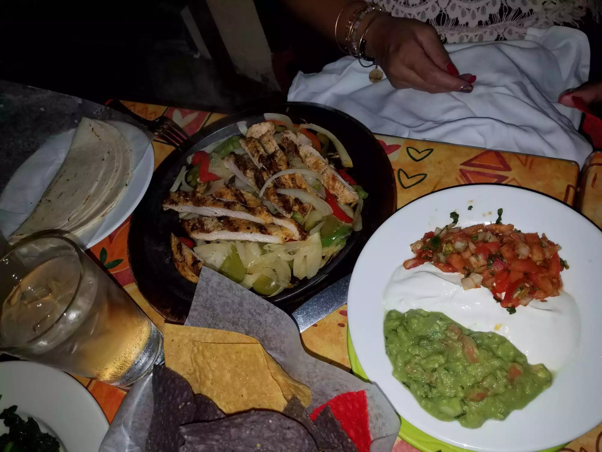 Large portions, good service, dining outside. Had Fajitas. very tasty . good guac. Accepted reservations l;ast minute while I was in the city looking for a place. would recommend for a quick bite or leisure.