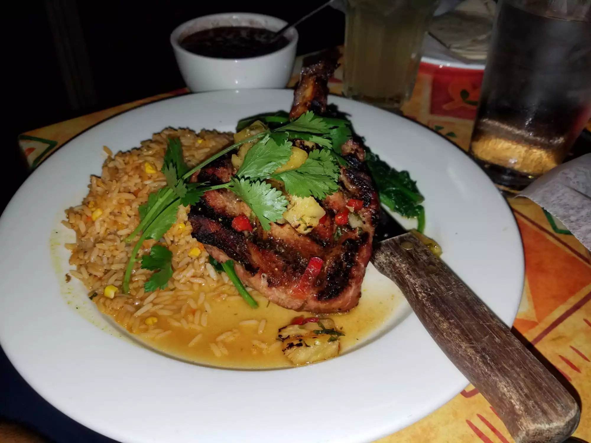 Had the grilled salmon and it was excellent. Spicy is spicy so beware. Wife had the enchiladas and kids had the quesadillas.
