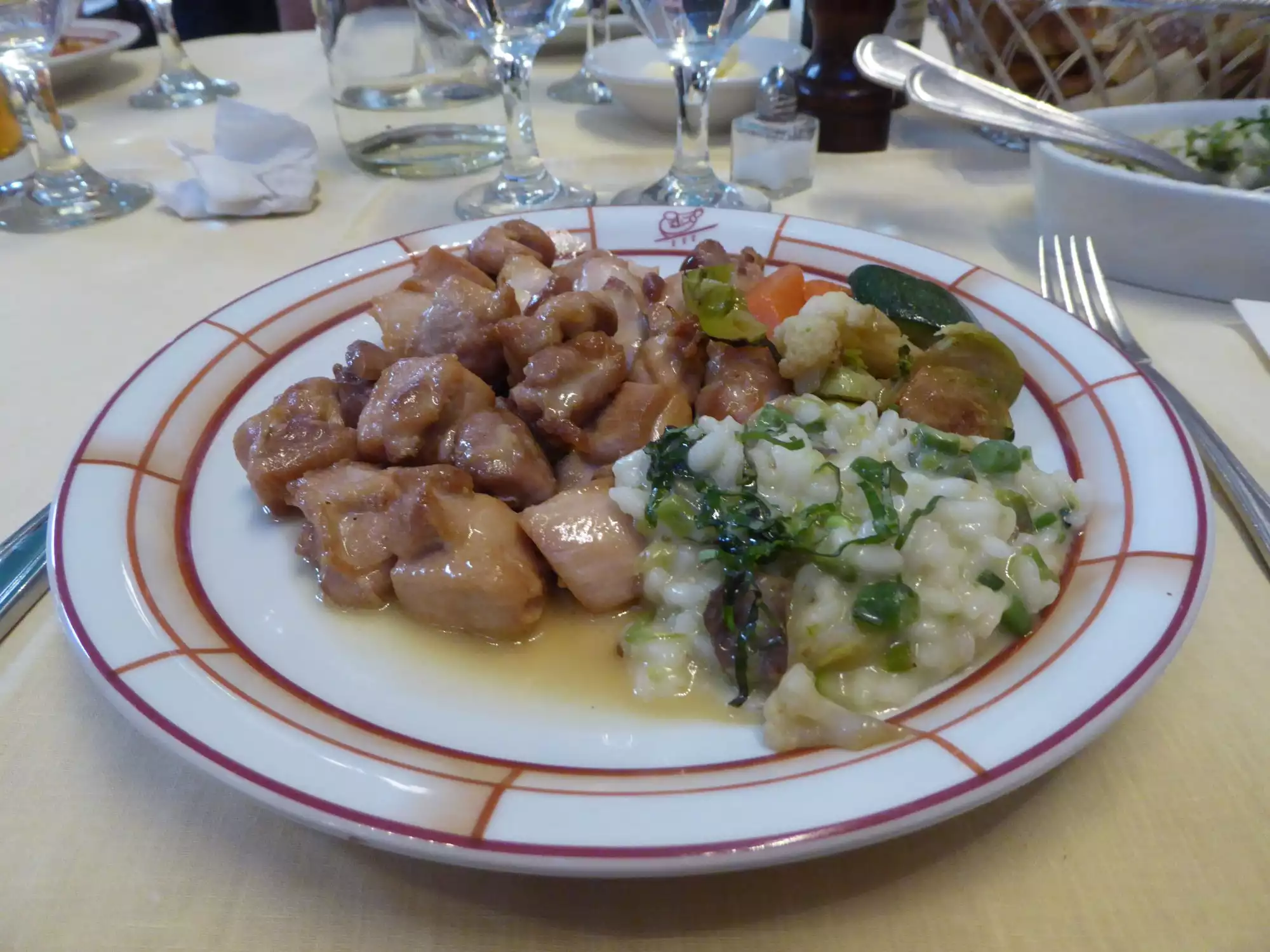We had a little difficulty finding the restaurant. We didn't see any signs on the main floor. It is upstairs on the side of the terminal away from the passage to most of the tracks. We all enjoyed our meals. Two had pasta which was fresh and delicious. One had eggplant which did not have pasta in it, but was a little casserole and very tasty. One had the club sandwich which was a little like a chicken pot pie. And one had a fruit plate with a nice assortment of fruits. All of the meals were a nice size - not too big or two small. Also, the bread and sweat butter was delicious!!!!! We had a made a reservation but arrived early and were seated quickly. It was very convenient to finish dinner and linger just a little to time the next train!