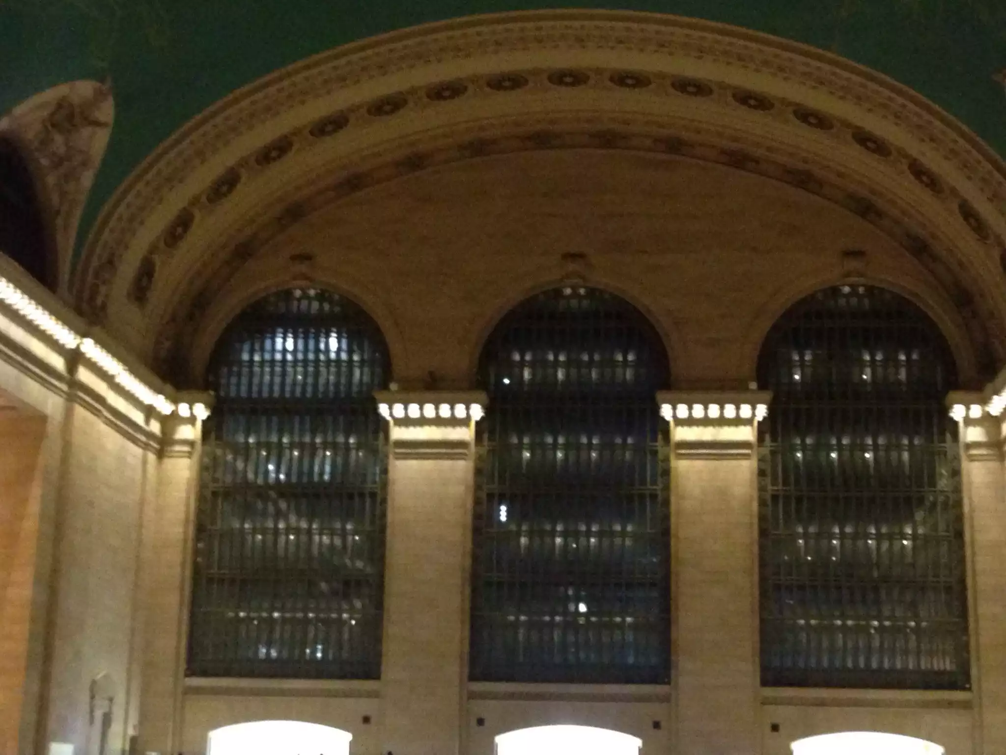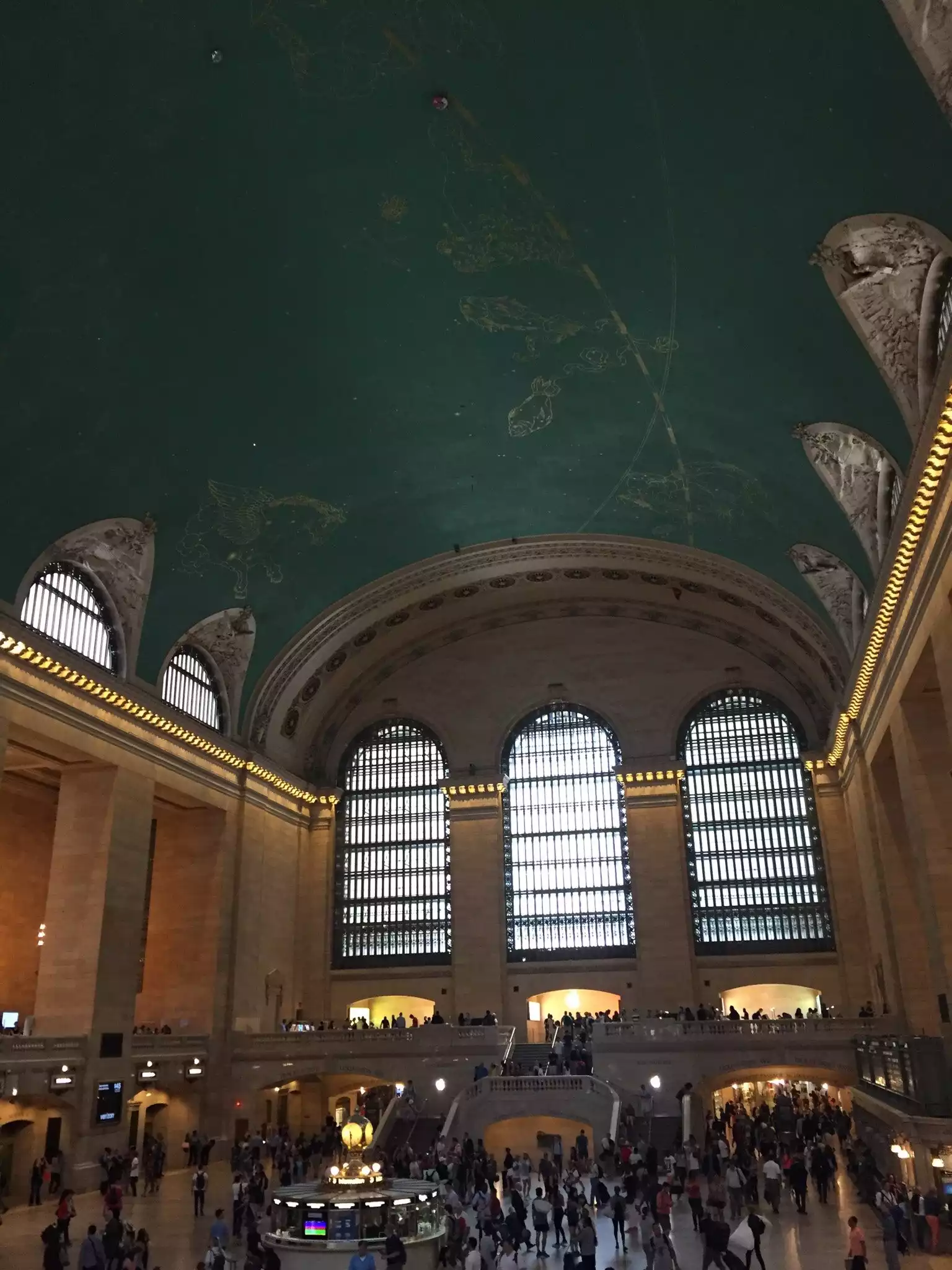 We searched high and low and finally found what we'd been looking for - the famous New York waiter who treats customers rudely and brusquely and expects them to be grovelingly grateful in his presence. We were beginning to think this species was extinct! So, having found him, ordered two glasses of white wine ($40 including tip, ouch!) and then kicked back to take in surely the most beautiful rail terminal in the world. I have to accept that the wait staff, though arrogant and aloof, seemed to be doing their job extremely well. Lovely air conditioned atmosphere, too.
