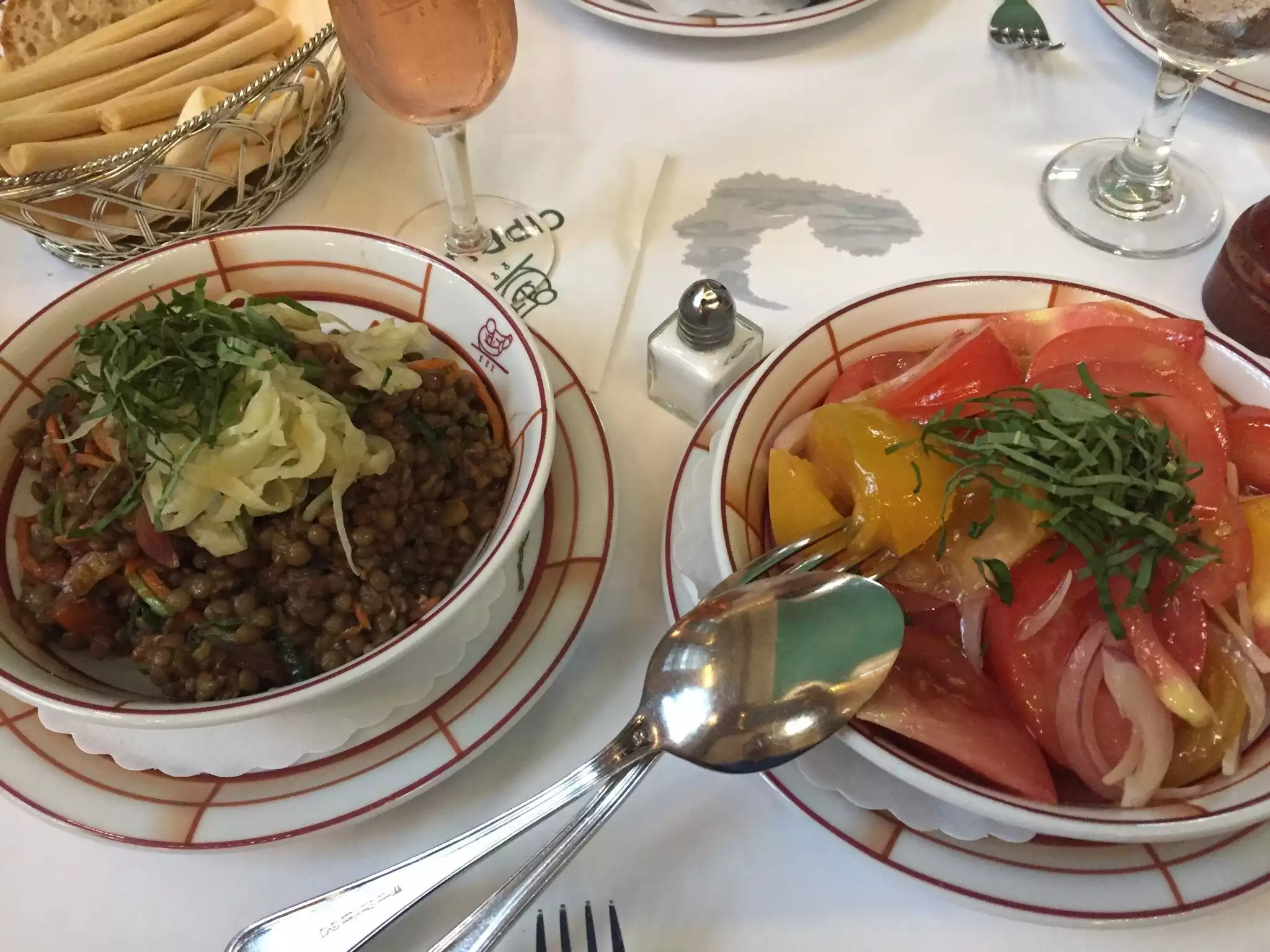 We had an early light lunch at this New York landmark - a branch of the Cipriani/Harry's family at the West Balcony overlooking the busy Grand Concourse of Grand Central Terminal. Starting with the signature Bellini (created at Harry's Bar in Venice), we ordered a trio of salads to share between the two of us - artichoke & avocado, heirloom tomato with red onion and lentil with julienned vegetables. The artichoke & avocado was a bit rough-hewn and could've been a little more flavorful (the overlay of fresh Parmesan helped), but the other two were delicious and healthy!We skipped dessert but the bill came with a tiny plate of bite-sized cookies that were the perfect ending. A fun, nice and unique dining experience under the gorgeous constellation canopy of Grand Central!