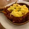 Had the Biscuits and Gravy with potatoes, no eggs. We sat at the bar and got great service and delicious food. Our server was very helpful with my egg situation (some kinda allergy/sensitivity) and added a fruit side as a substitution. The restaurant was very busy but if you don't come with kids you can sit at the bar. Otherwise they also have a to go counter with some patio style seating.