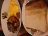 You can't go wrong with an all-American breakfast - you'd think. Well, this one was a total disaster. It was a classic simple breakfast comprised of 2 scrambled eggs, bacon, toast and potatoes. All the above came in quantities fit for a small child, The eggs, bacon and potatoes were very dry and tasteless, and the toast was greasy from too much butter. To complete the feast, the coffee (no refill) was undrinkable. This breakfast cost approx. USD25 which is quite normal for a simple Las Vegas restaurant, but this is one restaurant I will not be visiting again. Ever. ,