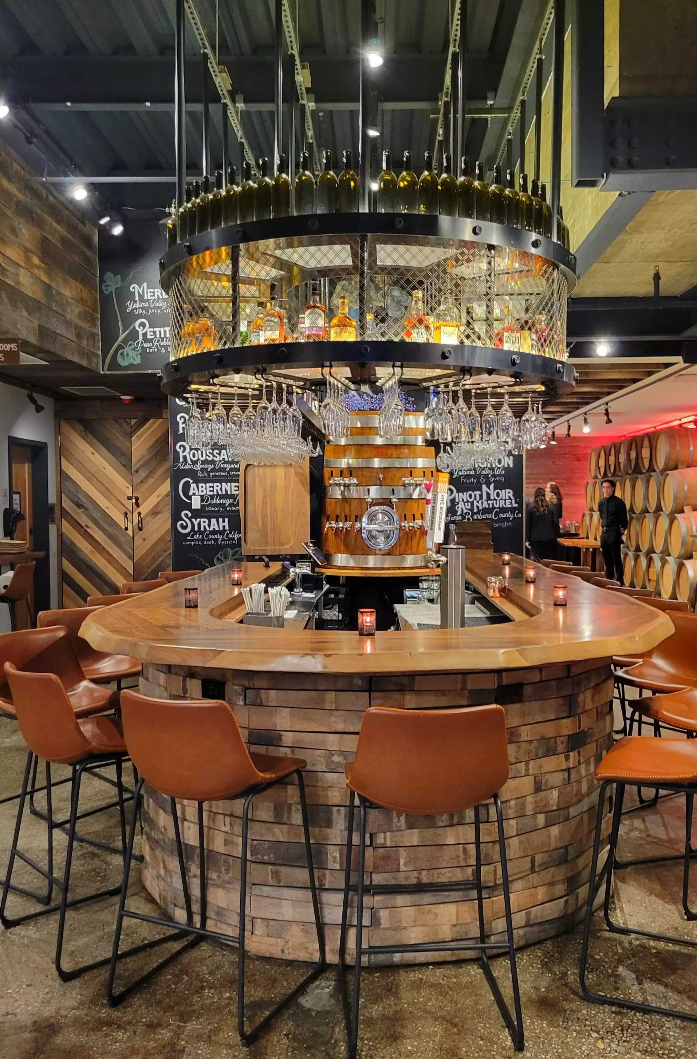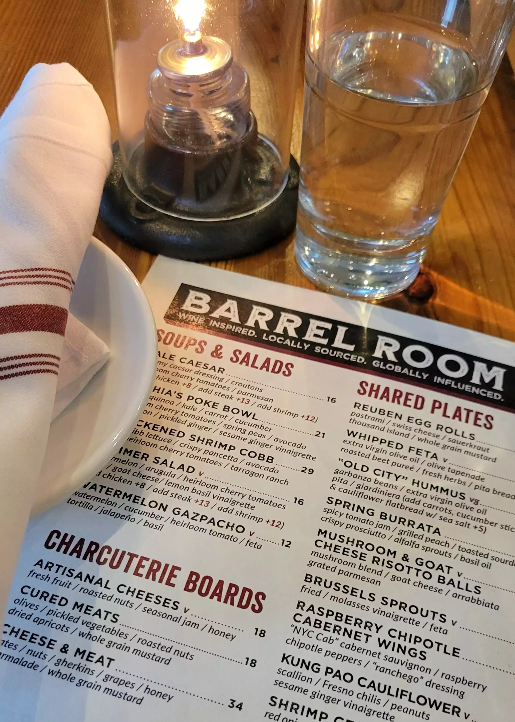 small space holds only about 300 people, so everyone has a great seat. wines are good, we had some appetizers here which were also good, but the tables in the main area are too small for dinner. maybe if you go early for dinner they have bigger tables in the barrel room?