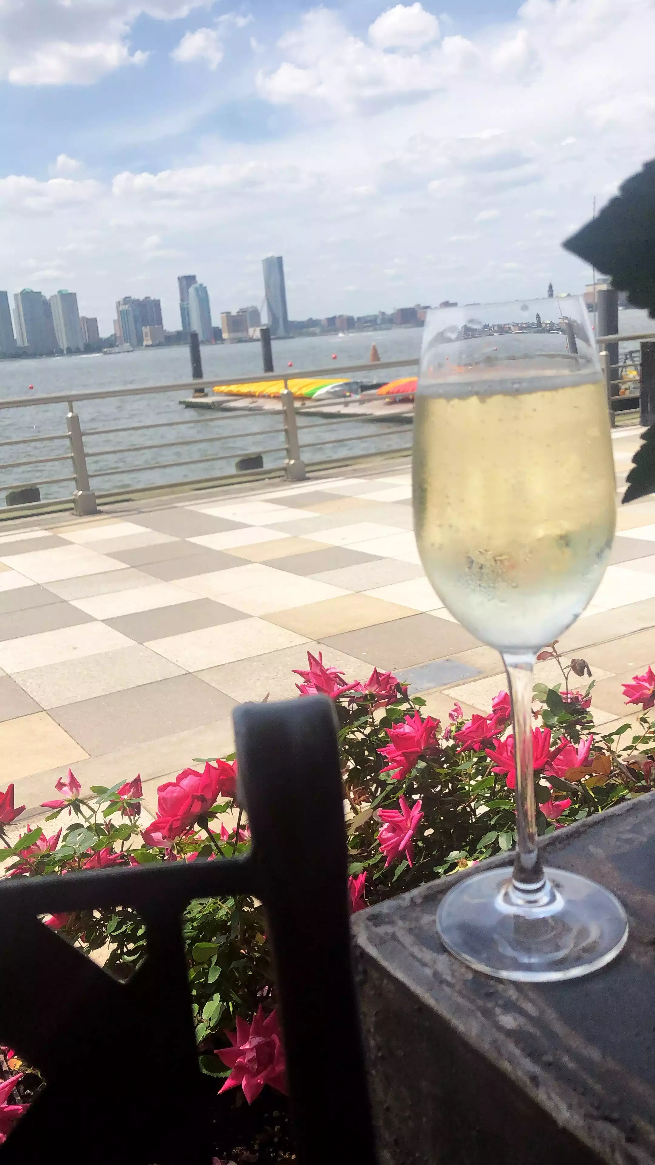 Beautiful place inside the shopping district of Chelsea / we stopped to taste a glass of wine while looking at the landscape Two boats outside