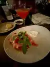 The food here was OK but that's probably all I would say about it. The impression we had from the service aspect was that they wanted us in and out of there as quick as possible. We had a table booked for 7pm and we ordered a starter and mains and were out of there just after 7.30 (and we had ordered a bottle of wine too). We had the Heirloom tomato starter and the tomato's were sliced thinner than a piece of paper, so had no taste at all. I ordered the Salmon and it was served with interestingly cooked vegetables but they were cold by the time they were served so I think had been pre-cooked.