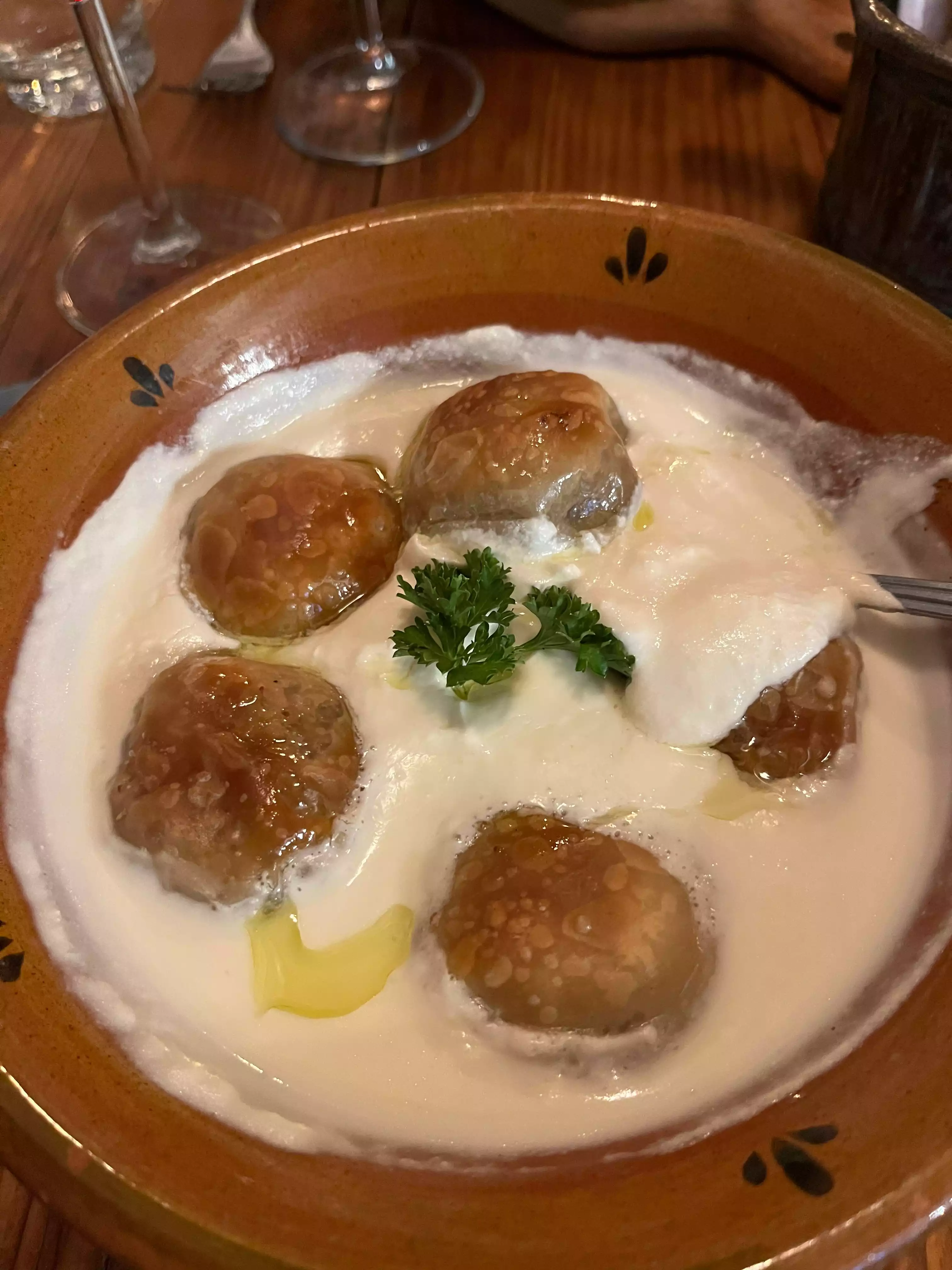 Atmospheric and cosy restaurant with outdoor seating too. First time eating Albanian food and we enjoyed it. Lovely service. Enjoyed the pepper dip with warm bread and the veal dumplings for starters. Meat balls and lamb with rice. The winning dish was Sheqerepare for dessert. Yum! On the expensive side for portion sizes but friendly service. If you want to try Albanian food in New York would recommend.