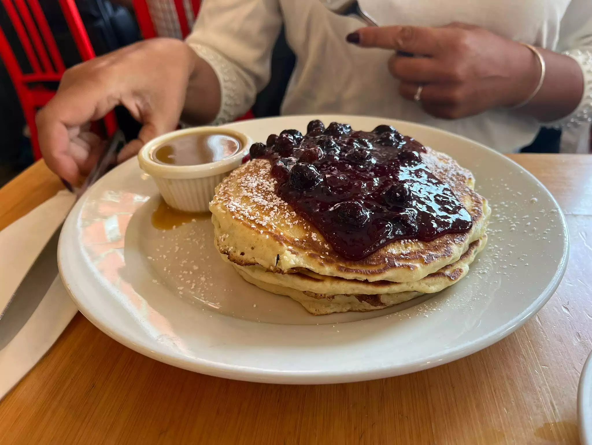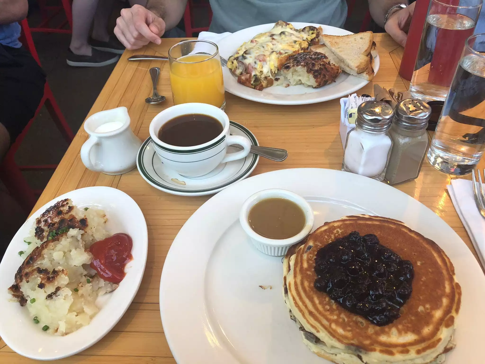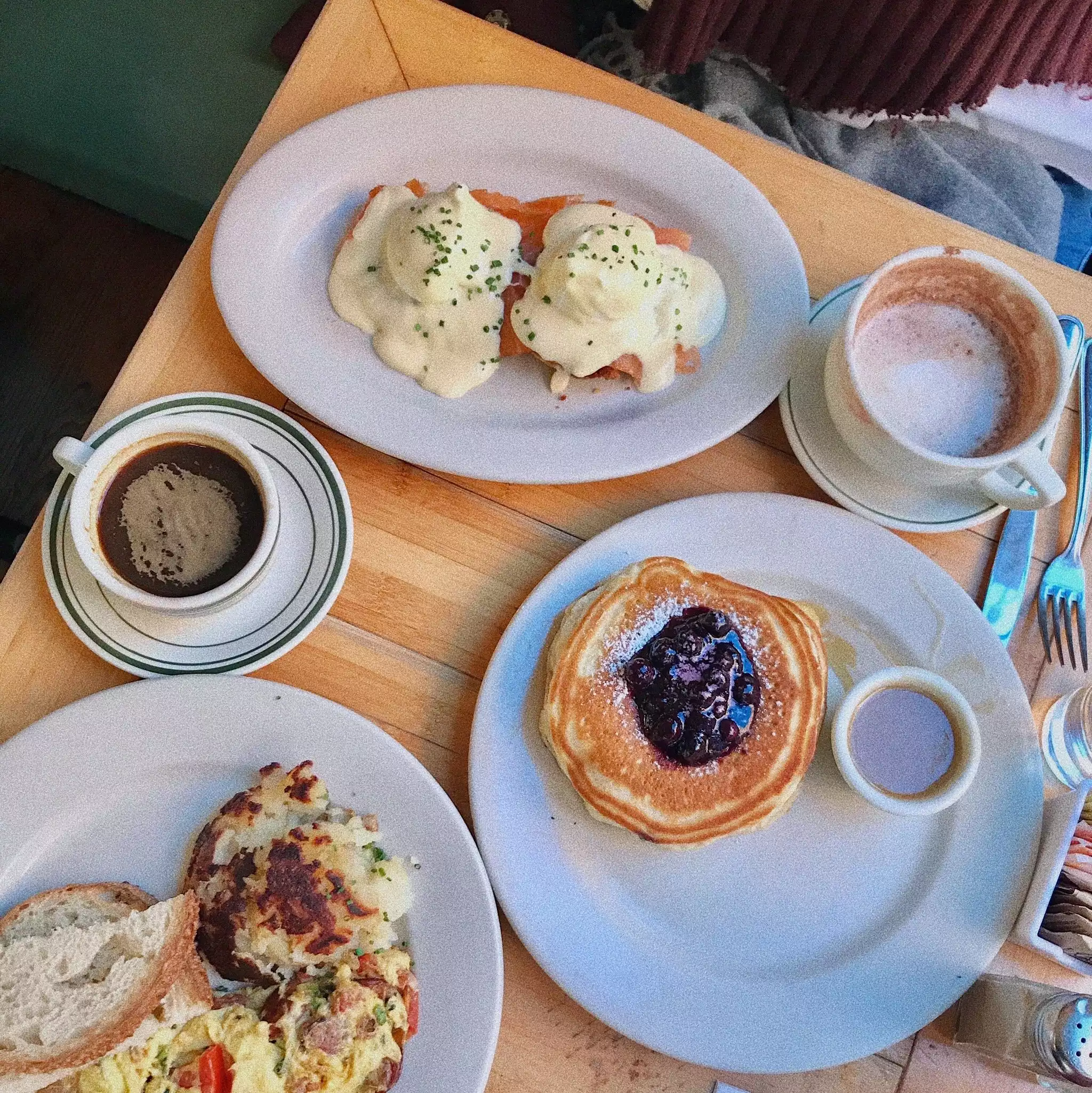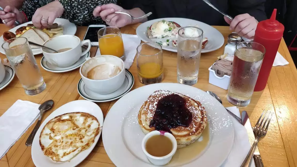 Best pancakes blueberry pancakes ever and Eggss Benedict, it quite says it all. Friendly and efficient service, huge portions and price similar to other restaurants here, worth a visit and eventually the wait.