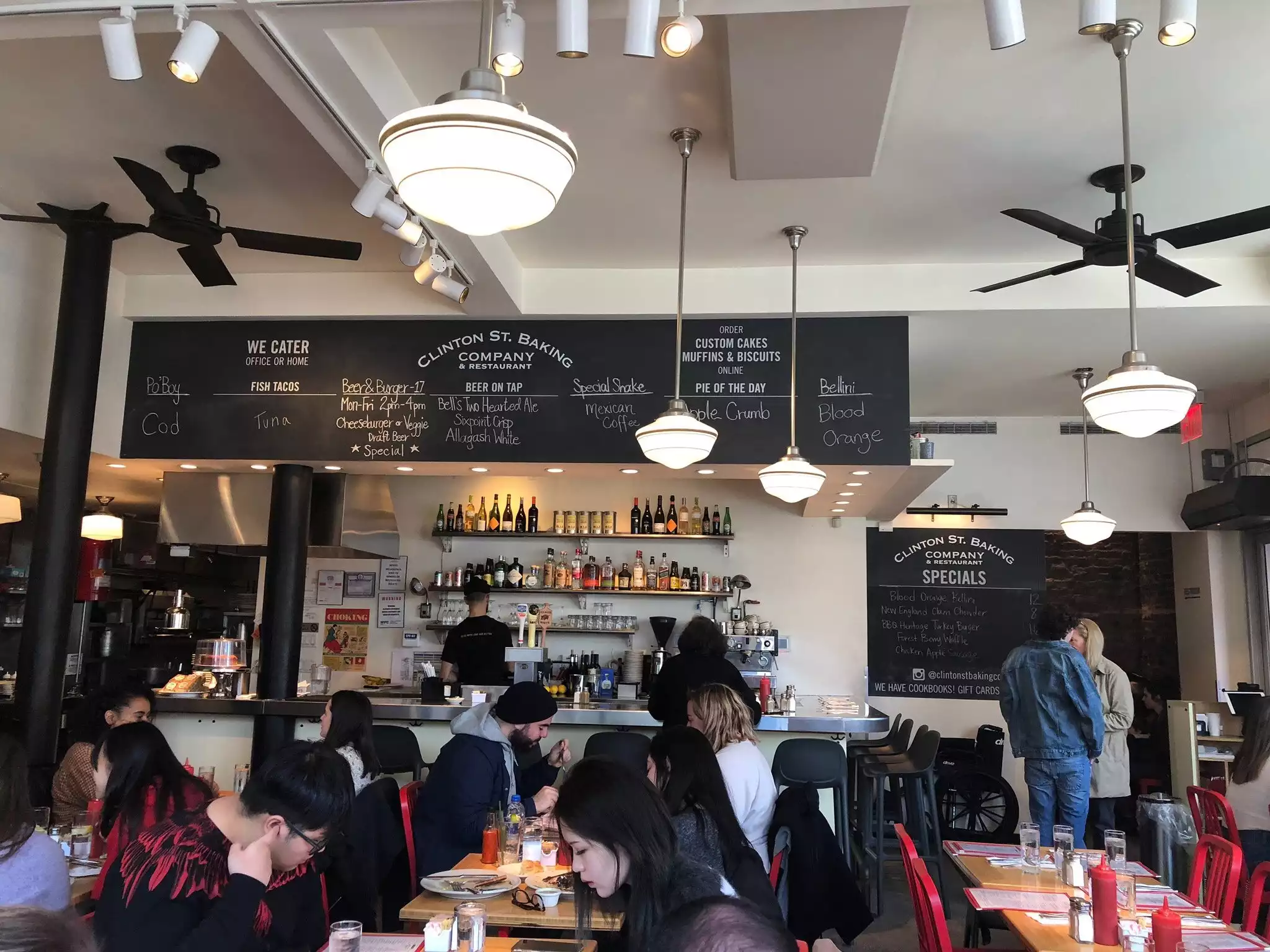 Number one you definitely need to make reservations (it opens up I believe one month in advance) otherwise you'll end up waiting as others were, but when you come in you have to tell them you have a reservation otherwise they think you're just coming in off the street. The place is lively and we were seated at the corner booth by the window so that added to the nice vibe of the place. I ordered things separately (i.e. eggs, bacon, hash browns and fried green tomatoes), The three of us shared blueberry pancakes, definitely something to order but frankly I wish they would use maple syrup and not the toffee flavoring they have. I didn't need to order hash browns since sharing a serving of hash browns with my daughter would have been more than enough for the two of us. Coffee was decent. All in all a good experience and would definitely go there again. https://www.tripadvisor.ca/ShowUserReviews-g60763-d479256-r877335542-Clinton_St_Baking_Company_Restaurant-New_York_City_New_York.html#