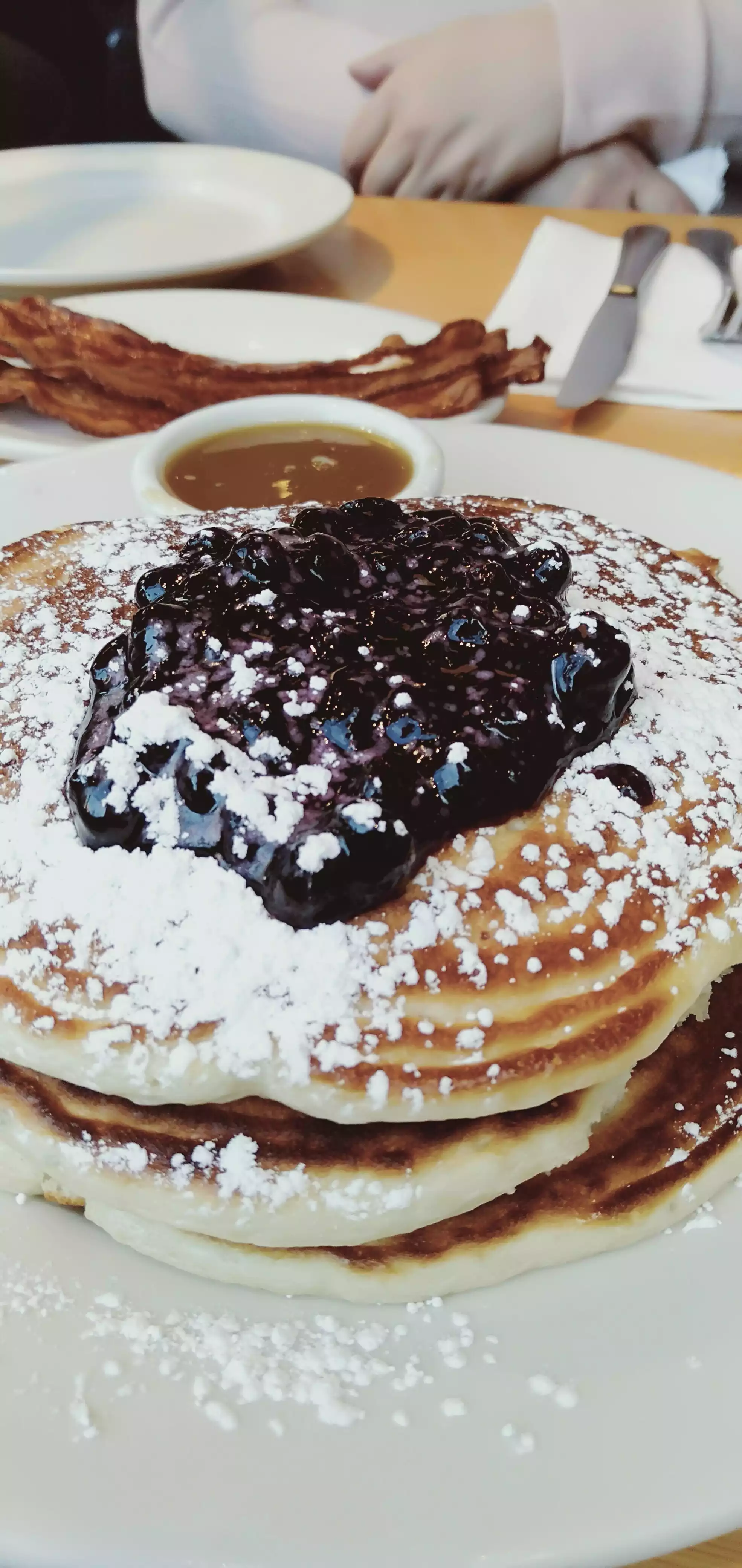 Came all the way from Sydney Australia to try these pancakes, the blueberry pancakes with bacon were awesome. Service on the other hand was lacking. Staff were too busy chatting amongst themselves, nearly spilled food on us as they cleared the tables. Very disappointed as was expecting an overall great experience, have followed their socials for some time now and expected more. Lucky for them the pancakes were good.