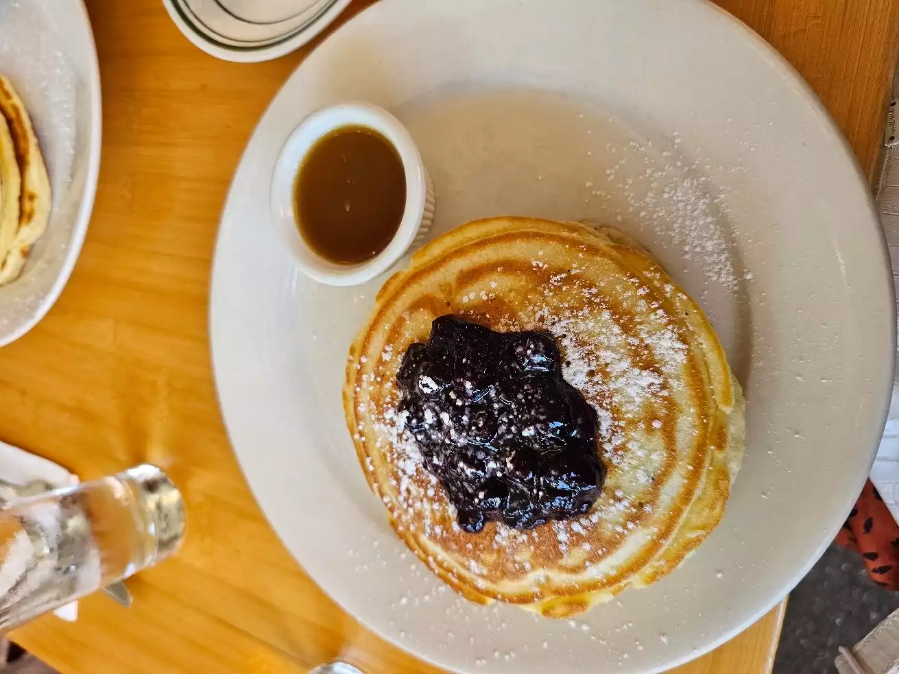 We had Breakfast in this Place after hearing that there were the best pancakes the wait to sit was 45minutes So we opted for the takeway solution that is next to the place the pancakes are good soft and fluffy with a great jam you Blueberries also the good local cute muffins ..