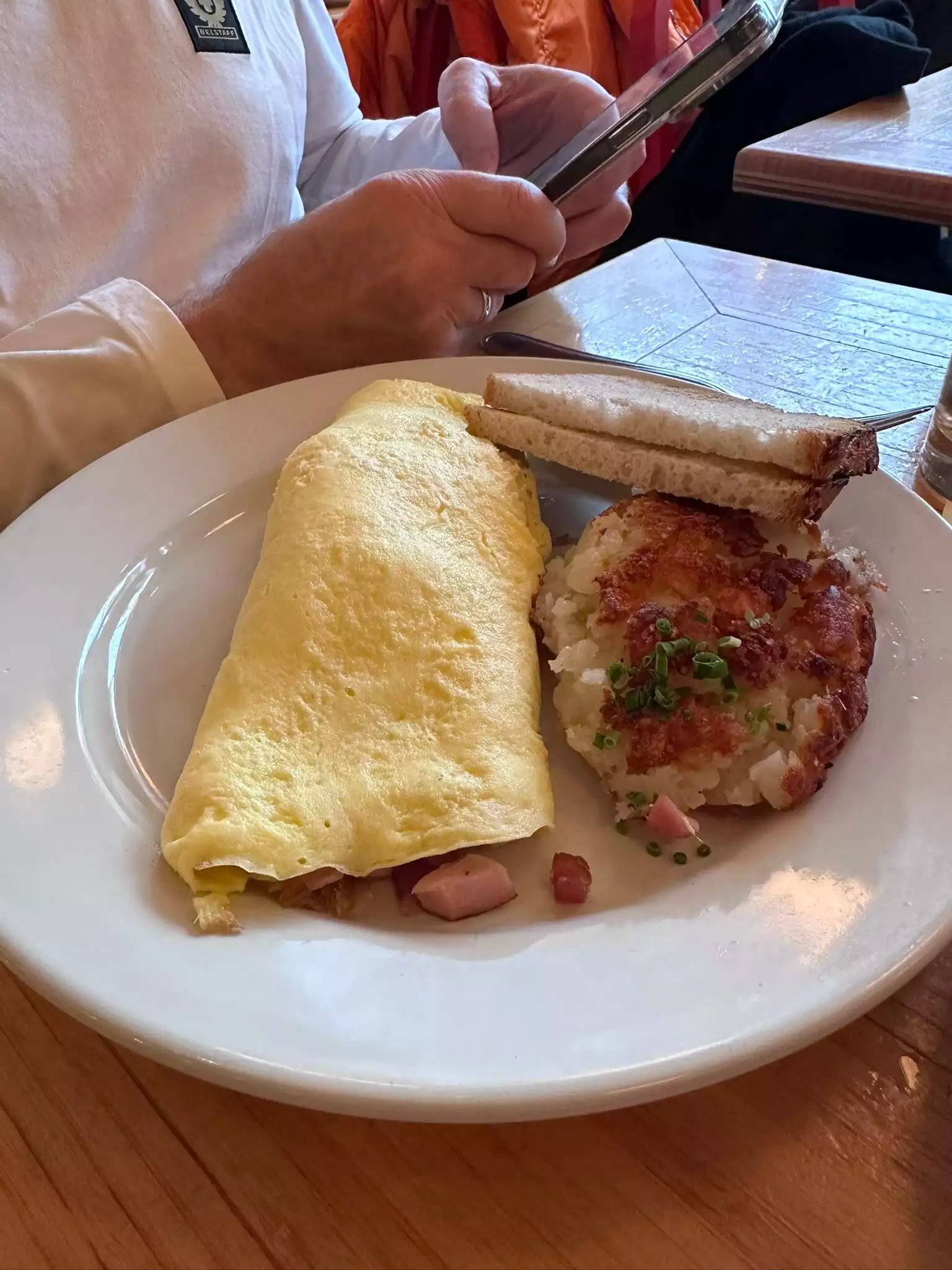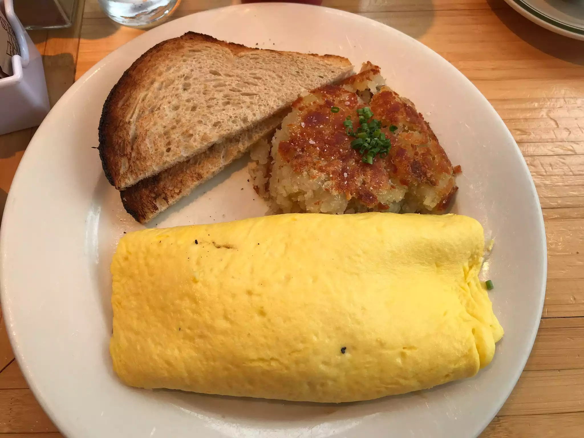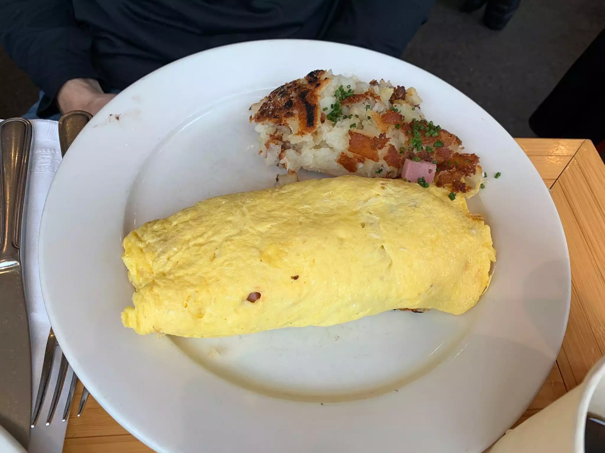 The omelettes and pancakes are delicious.the omelette is really too big and served with fried potatoes (?).huge portions. But too expensive anyway - we had 2 omelettes, coffe and shared 1 pancake for 80 bucks. And there is the "automatic gratuity" included, but other tips expected. Not sure what this means. Anyway, 80 bucks for 2 for a breakfast. It was ok, but I wont go again. Ps. : 45min waiting for a table. Arrived there on a Saturday at 9.30am.