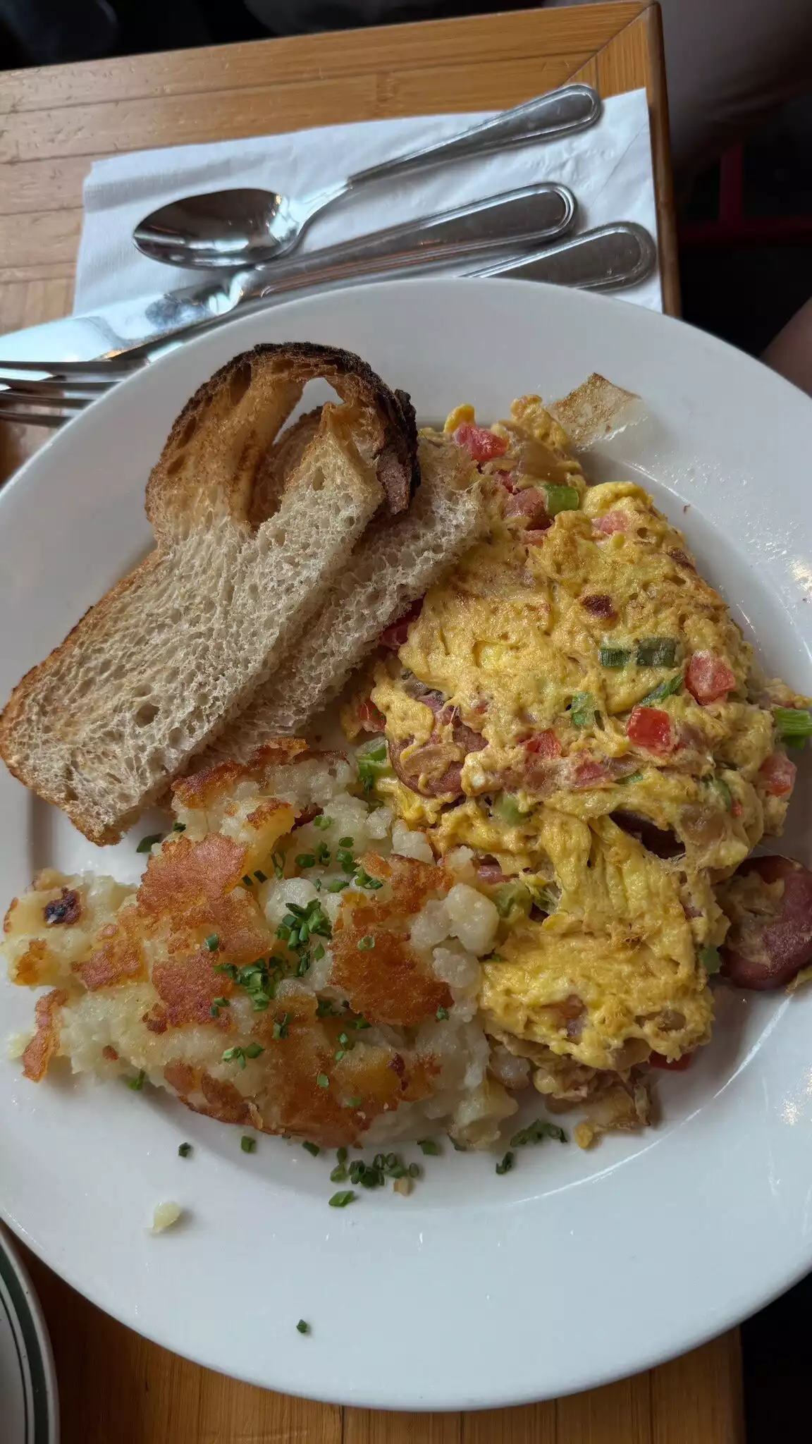 Nice breakfast tasty dishes large portions. Service was friendly and efficient. Definitely recommend if in the area or visiting