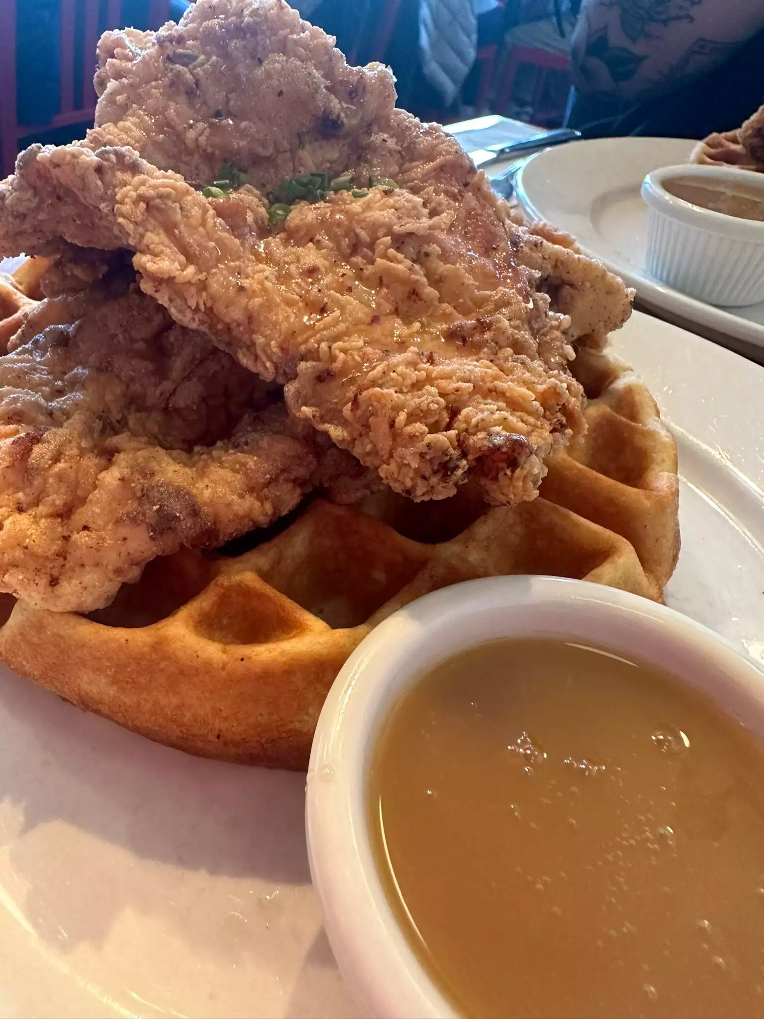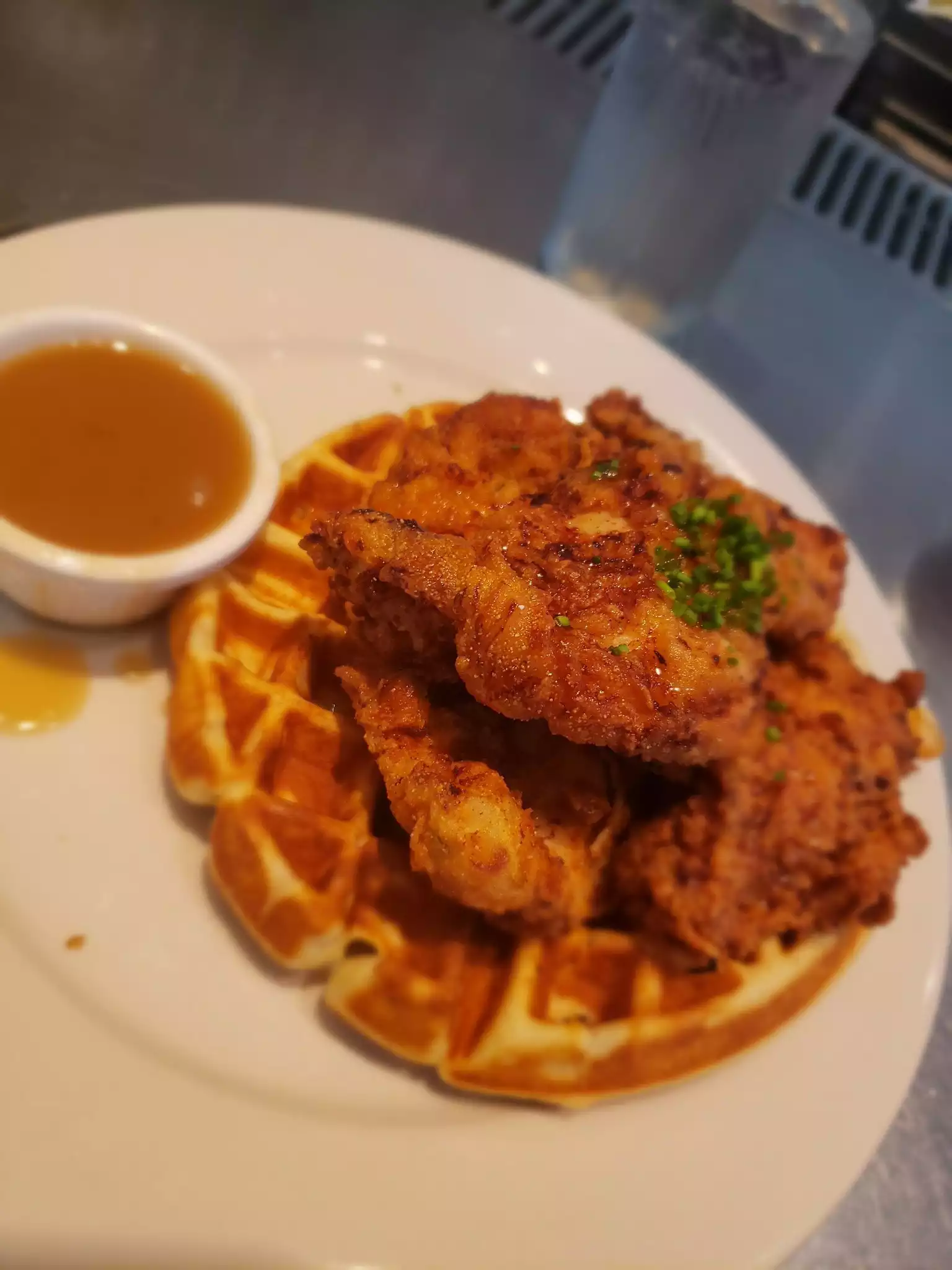 Amazing fried chicken waffles and hot maple sauce - chocolate shakes - great service fabulous neighbourhood to walk it off. Great service — really good food.