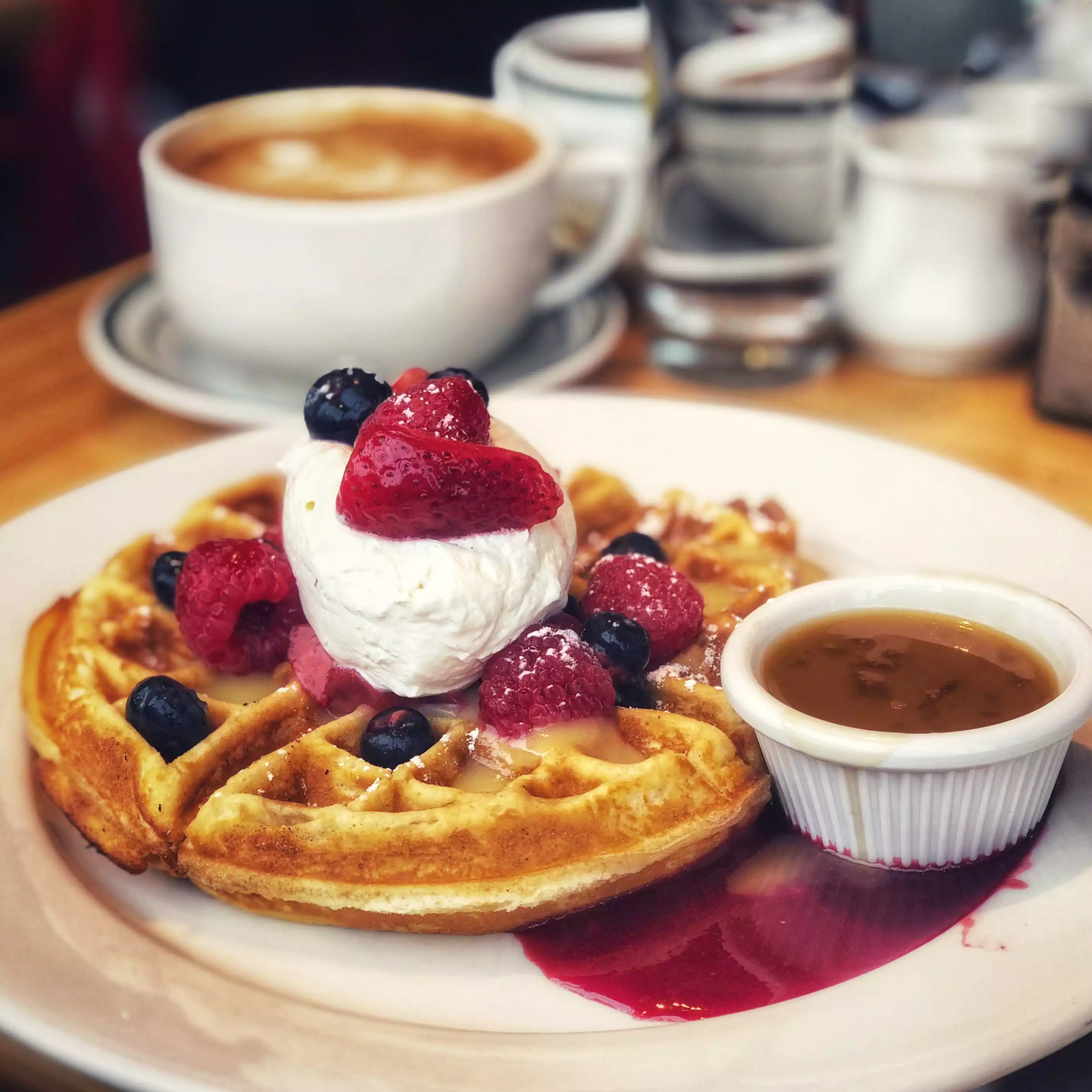 The place is good for having breakfast and delicious waffles and one can come here with friends and family for breakfast