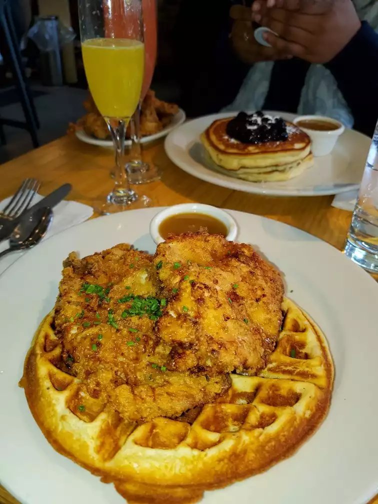 Food was extremely delicious, service was quite refreshing, but the wait was a grooling 1hr. Wish they offered an online reservation an or waiting list before you arrived. I had the fried chicken and waffles and although savory, the syrup brought together a prefect balance of sweet and salty. BTW as much as I loved the Chicken & Waffles. The blueberry pancakes my sister had were even better! Idk what it is but whatever they use, It practically melts in your mouth. Definitely plan to return but get the waiting list availability online to save time. There was a lot of confusion in the front on how to get in line for a waitlist.