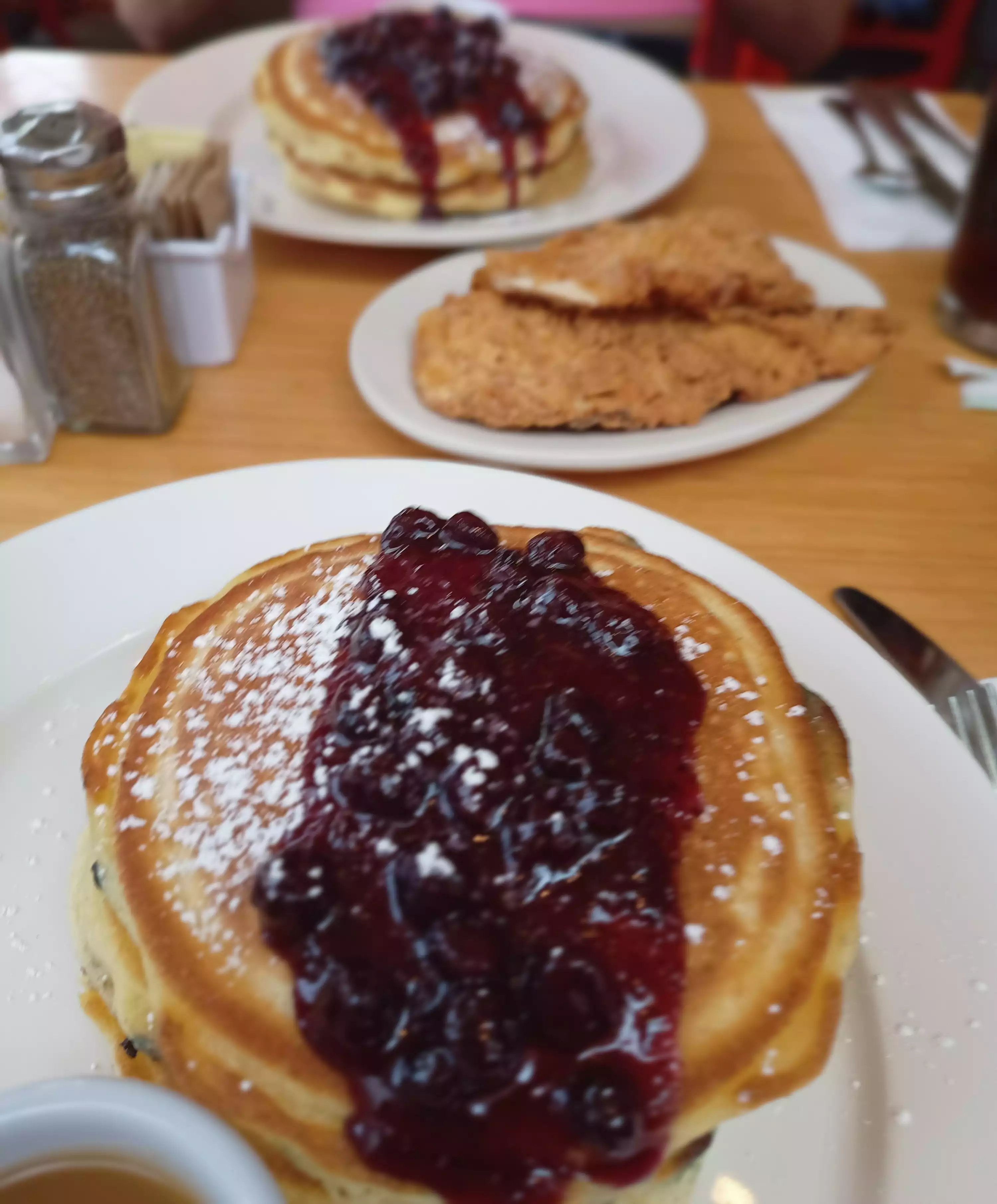 I had the best blueberries pancakes ever, the staff amazing and I'd definitely return there. On another occasion I had the waffle with fried chicken and it was good too
