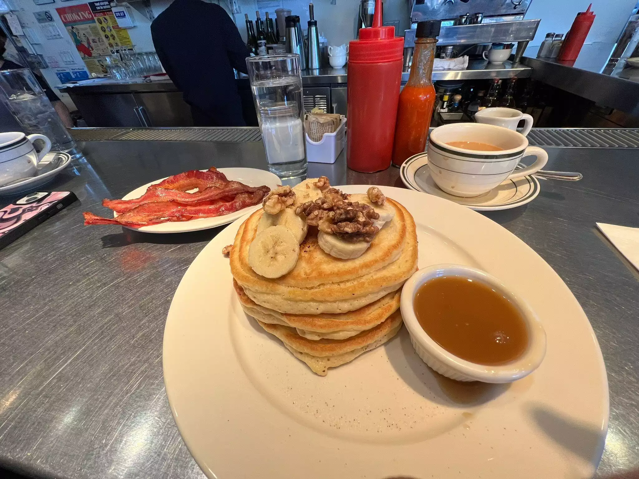 Looks like traditional diner in Manhattan, I tried banana walnuts pancake, and they were delicious. The service is good too